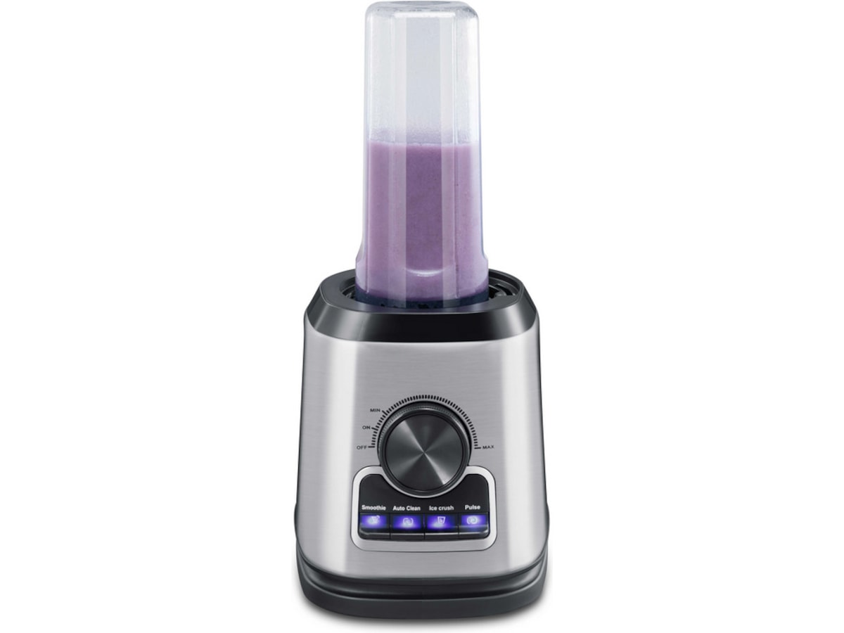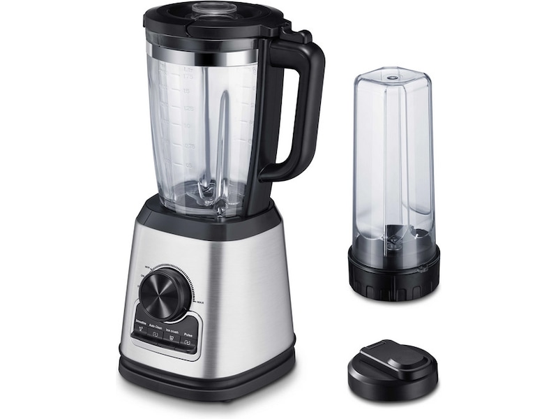 Hastigheden reguleres trinvis og nemt på forhjulet. Blenderen er ukontrolleret med fire specielle funktioner: knusning af is, blanding af smoothies, en pulserende effekt og et Auto Clean-program.