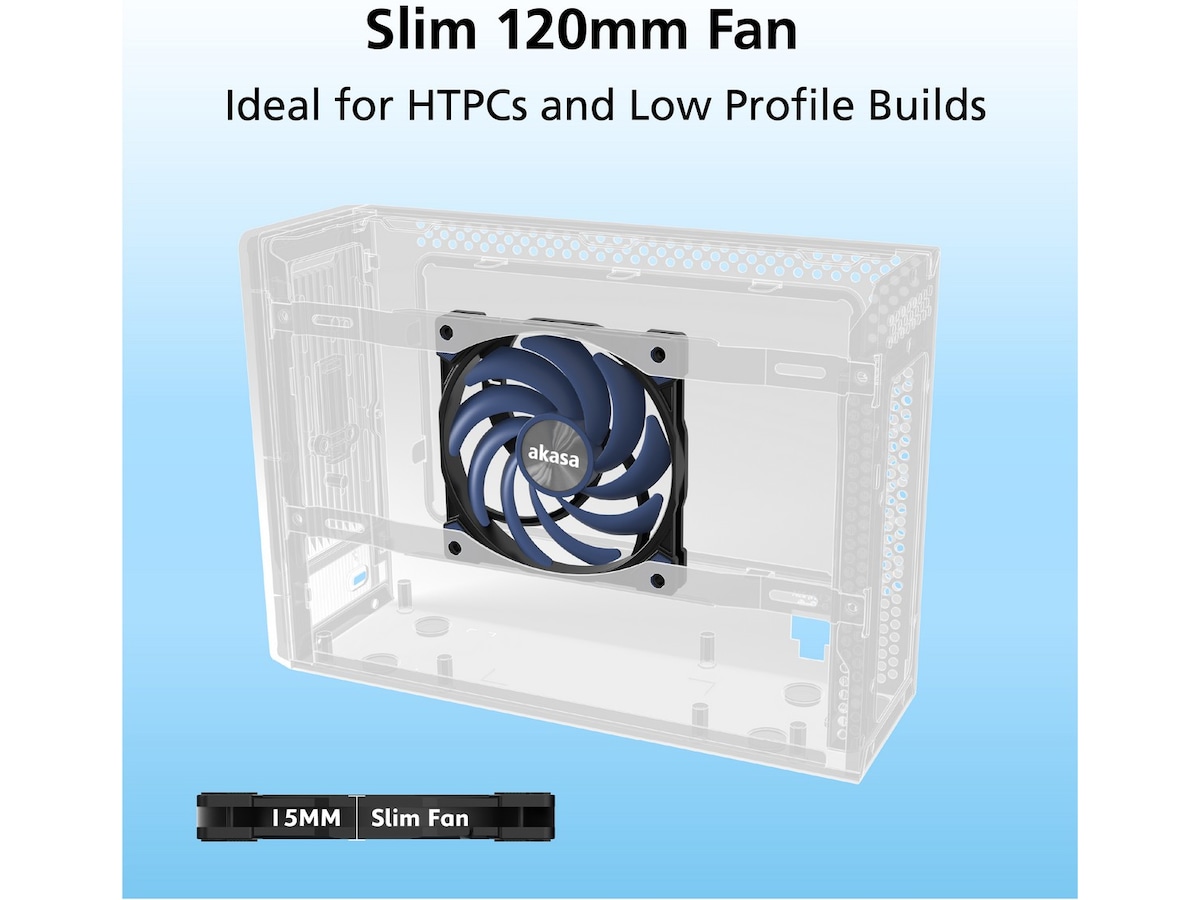 Alucia XS12 slim blæseren har en installationshøjde på kun 15 mm, hvilket gør den velegnet til små formfaktorhuse og til installationer, hvor pladsen er begrænset.