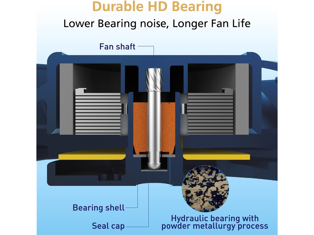 HD Bearing-teknologien udnytter øget oliekapacitet, som forbedrer smøringen på lejet, hvilket giver en jævnere rotation. Den forbedrede oliefordeling skaber den ultimative flydeevne, som forlænger blæserens levetid og pålidelighed op til 40.000 timer og en sænkende blæserstøj.