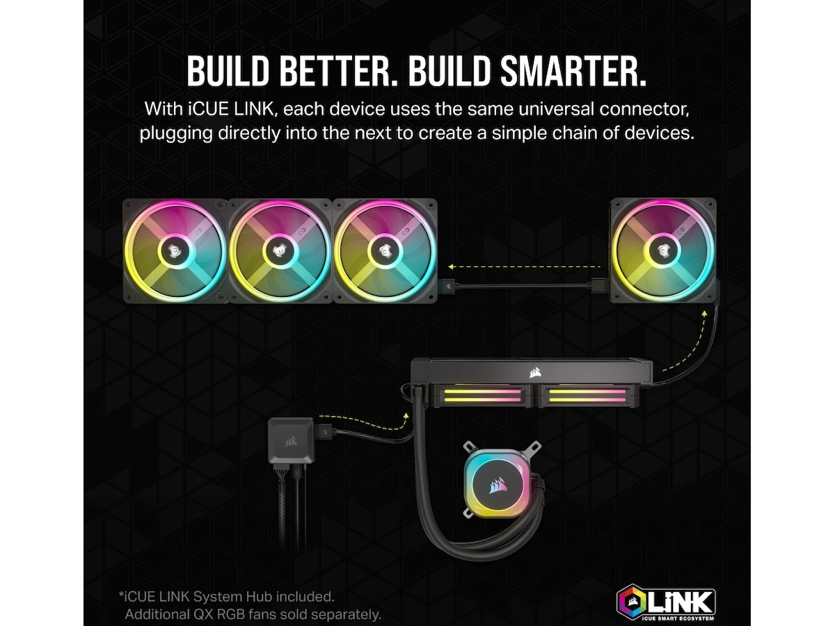 | Pakkeindhold | iCUE Link-kabel, iCUE Link hub, 3 140 mm iCUE LINK QX140 RGB-blæsere |