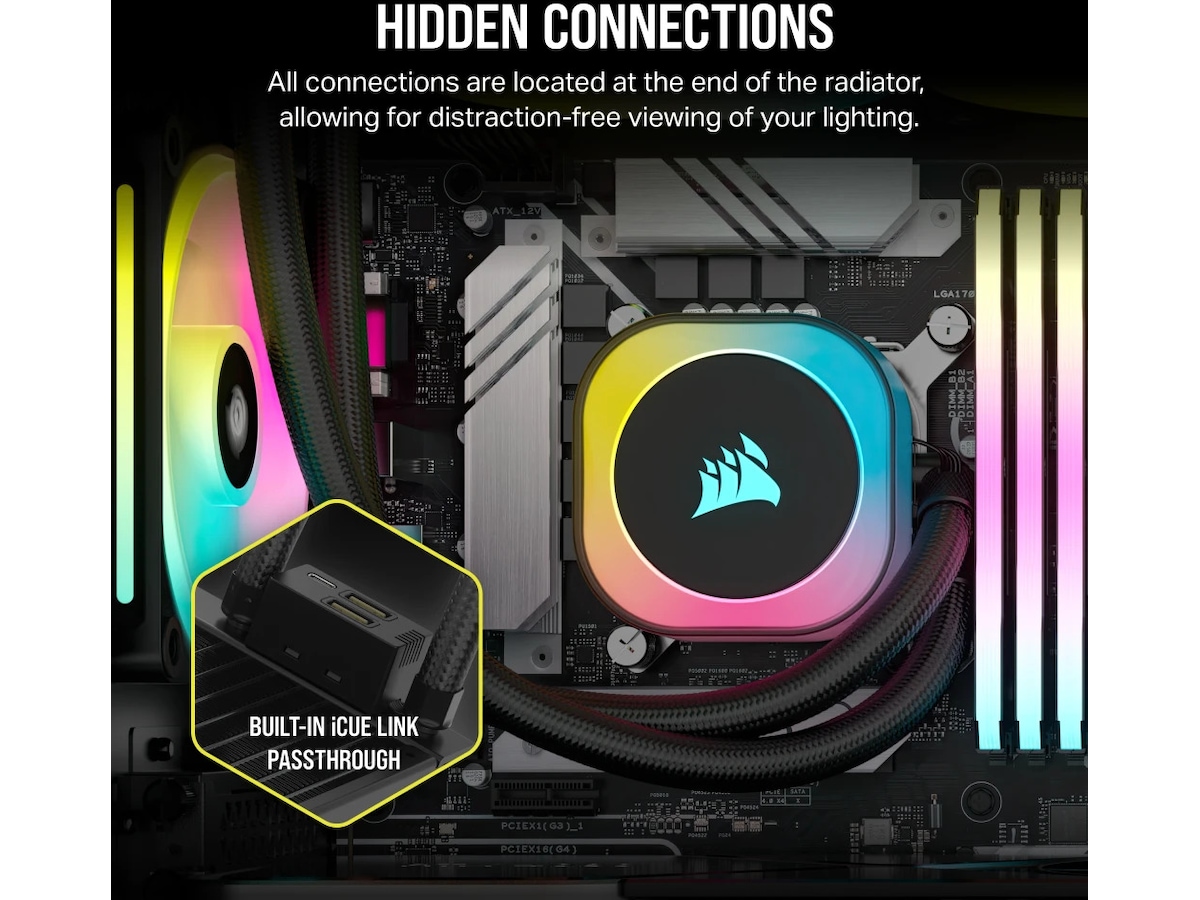 | Egenskaber | Adresserbar RGB, Gummislanger (450 mm), Termisk fedt forudtrykt med CORSAIR XTM70 Extreme Performance, Zero RPM-blæsertilstand |
