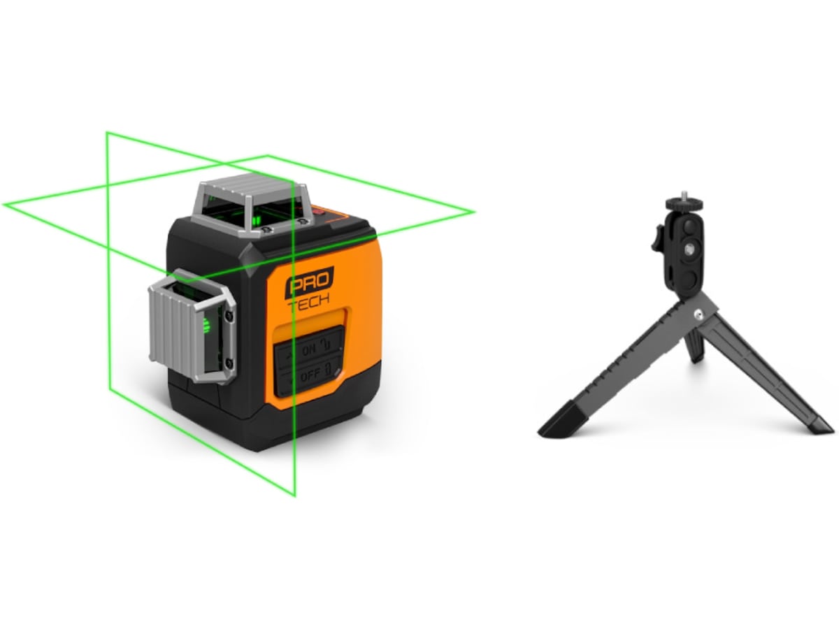 Protech 360° Cross Leveler projicerer sine linjer med stor nøjagtighed på op til ± 0,5 mm/m og sørger for, at begge linjer er præcist nivelleret og lige, hvor du vil have dem. Det tilbyder et arbejdsområde på 20 meter, og dets grønne laser giver dig høj synlighed under alle slags forhold.