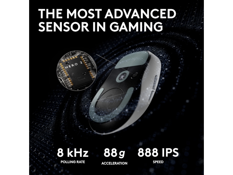 Den mest avancerede optiske sensor inden for gaming: HERO 2 har sporing over 500+ IPS, op til 44.000 DPI og præcis sensorkalibrering med nul udjævning, acceleration eller fltering