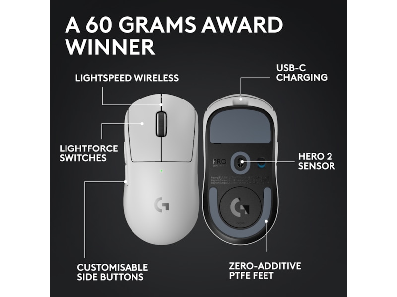 Det er et esports-ikon, der er blevet omhyggeligt opdateret — 60g prisvindende design, LIGHTFORCE hybrid-switche, den mest avancerede HERO 2-sensor inden for gaming og tilliden og pålideligheden af LIGHTSPEED trådløs.