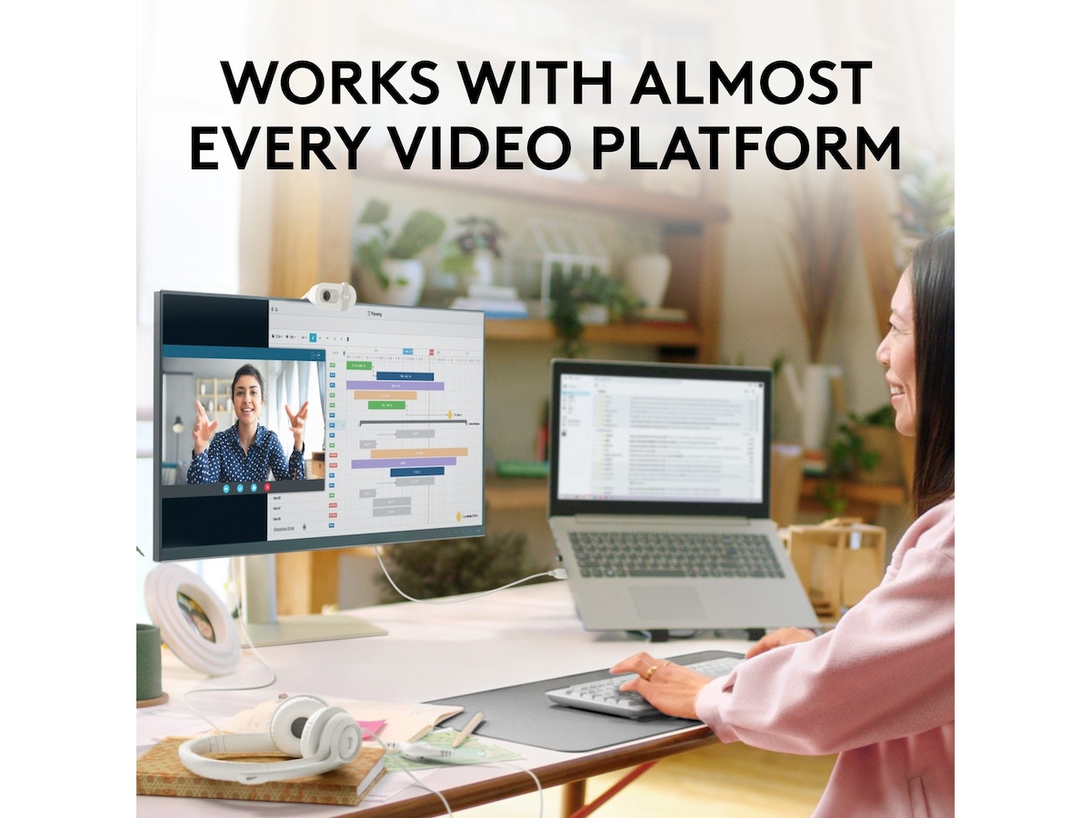 Brio 100 fungerer med de fleste videoopkaldsplatforme, herunder Microsoft Teams, Zoom og Google Meet