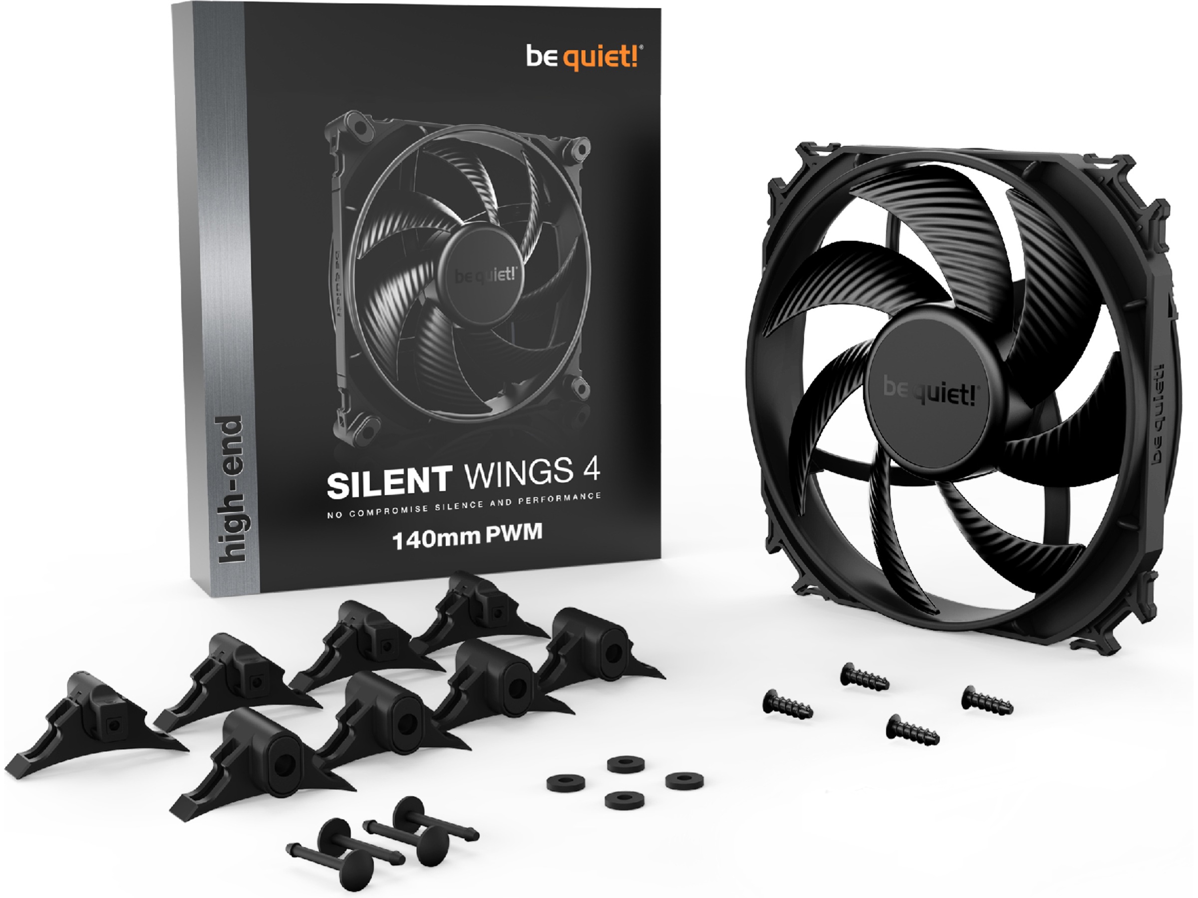 Det være sig som radiatorventilator eller i etuiet: Silent Wings 4 gør altid et godt indtryk. Det helt sorte design kombineret med det højkvalitets ventilatorklistermærke får ventilatoren til at skinne i ethvert system. Dette gør Silent Wings 4 til en højtydende og en utrolig flot fan.