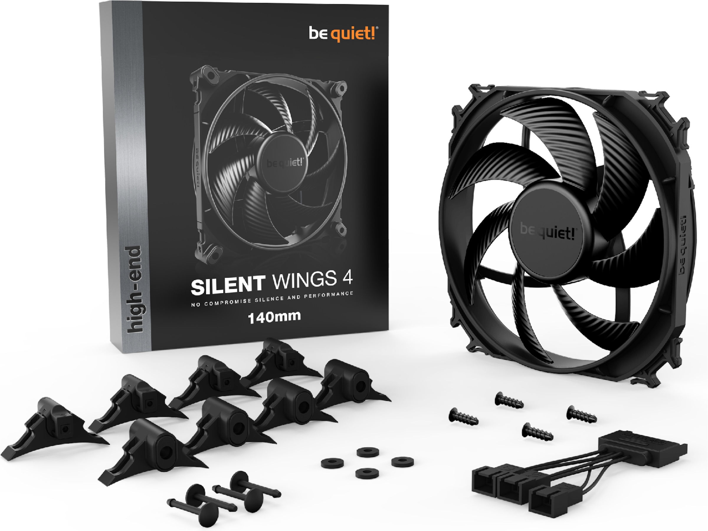 Det være sig som radiatorventilator eller i etuiet: Silent Wings 4 gør altid et godt indtryk. Det helt sorte design kombineret med det højkvalitets ventilatorklistermærke får ventilatoren til at skinne i ethvert system. Dette gør Silent Wings 4 til en højtydende og en utrolig flot fan.