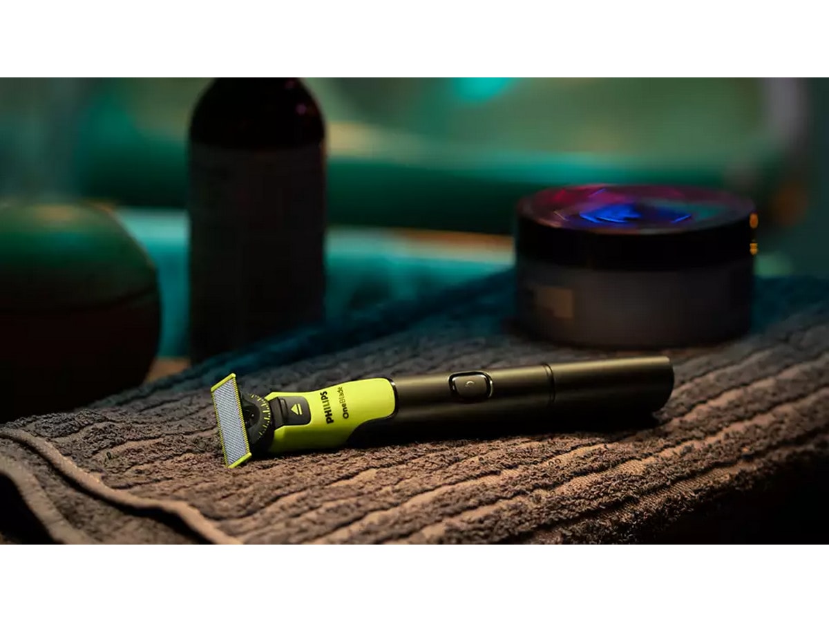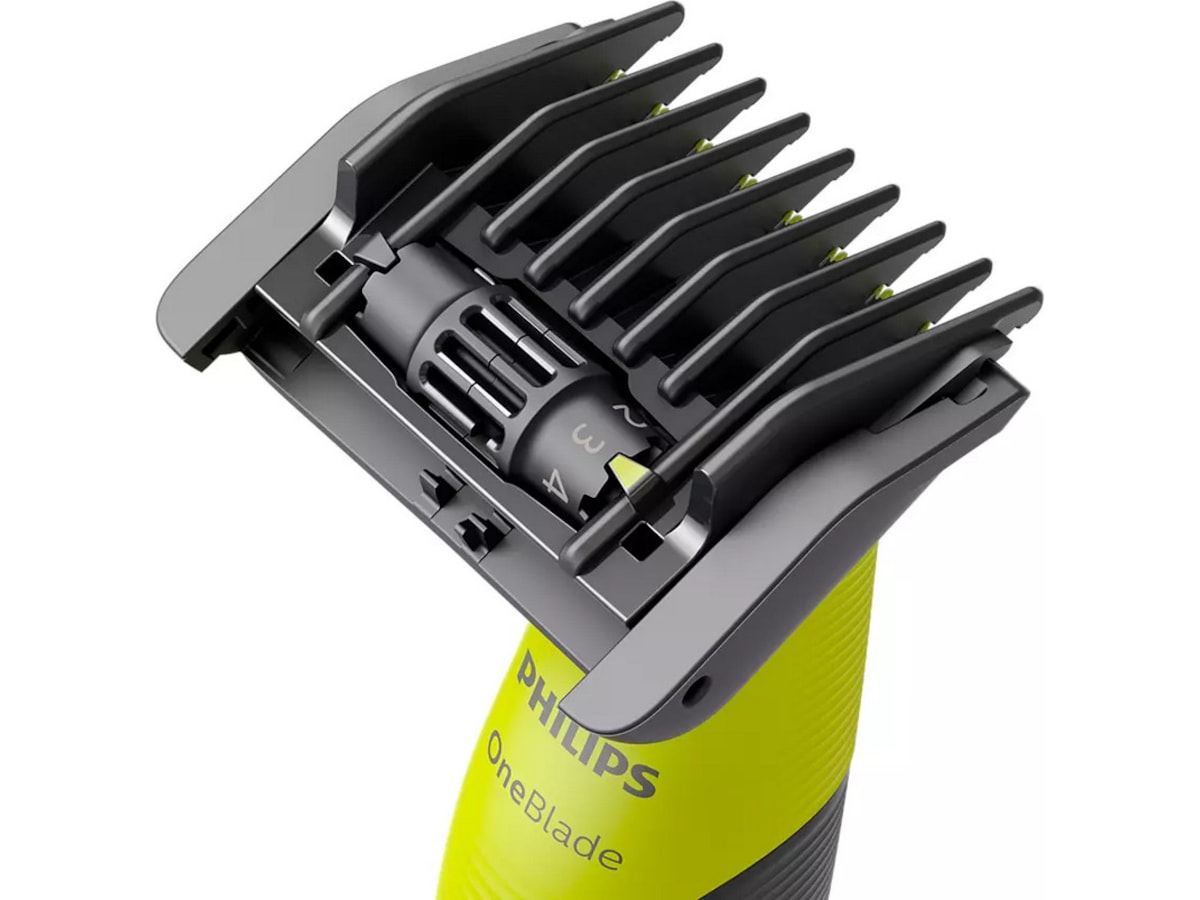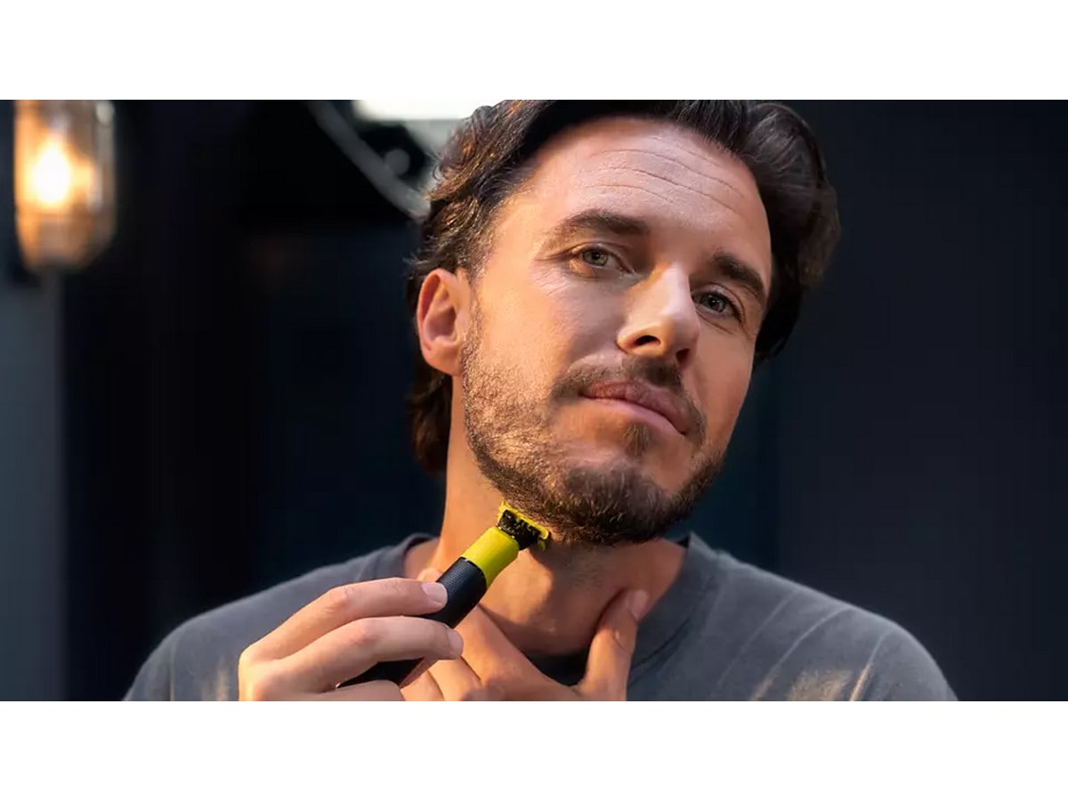 Philips OneBlade er en revolutionerende teknologi udviklet til ansigtshår. Den kan barbere alle hårlængder. Det dobbelte beskyttelsessystem – en glidende belægning og afrundede spidser – gør barberingen nemmere og mere behagelig. Barberingsteknologien består af en hurtigbevægelig klippeenhed (12.000 gange i minuttet), så den er effektiv, selv på længere hår.