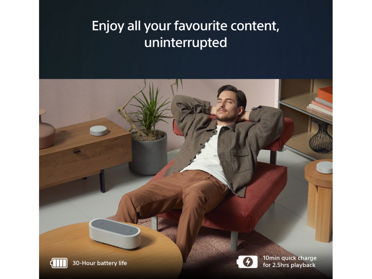 Med 360 Spatial Sound Mapping-teknologi, 30-timers batteritid */**, ubesværet opsætning, trådløst design og mere.