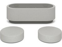 | Dimensioner (B x D x H) / Vægt detaljer | Højttaler: 30.6 cm x 12.3 cm x 9.7 cm / 1.4 kg, Bagerste kanal-højttaler: 12.2 cm x 12.2 cm x 3.9 cm / 295 g |