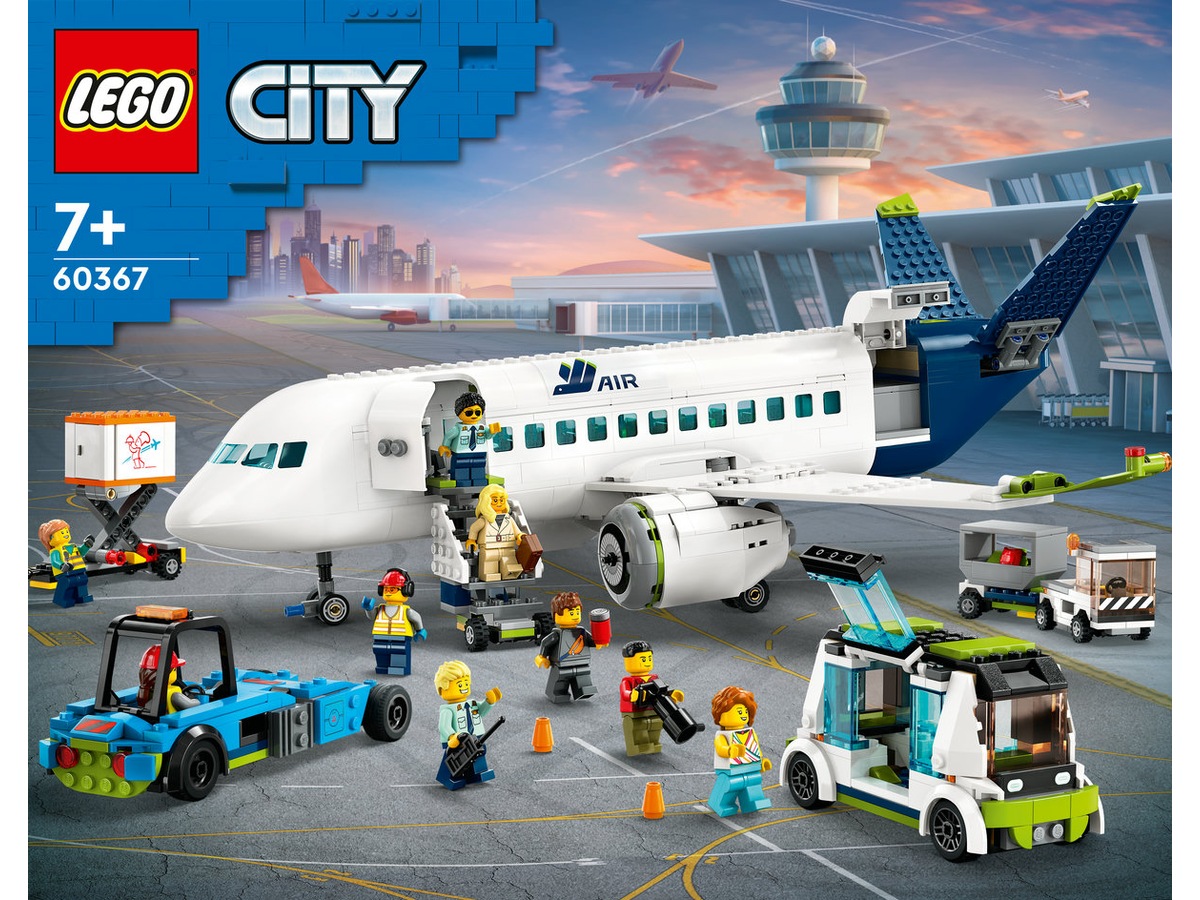 Her er en ægte lækkerbisken for fans af modelfly. LEGO® City sættet Passagerfly (60367) til alle fra 7 år er fyldt med realistiske detaljer og funktioner. Det superslanke legetøjsfly har et detaljeret interiør med cockpit, siddepladser, midtergang og toilet og omfatter flytrappe, transitbus, flyskubber, cateringbil og bagagevogn samt 9 minifigurer som inspiration til leg.