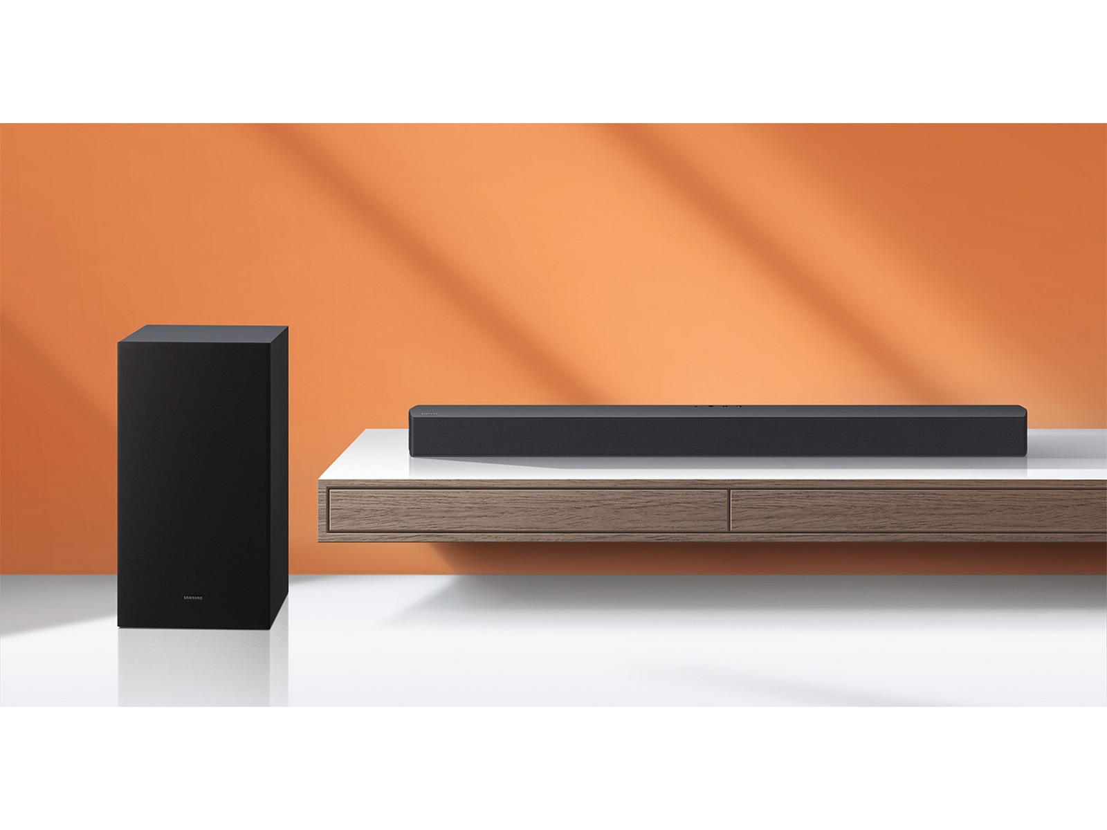 Højttalere inkluderet 1 x subwoofer - trådløs, 1 x lydbar - vægmonterbar/på bord