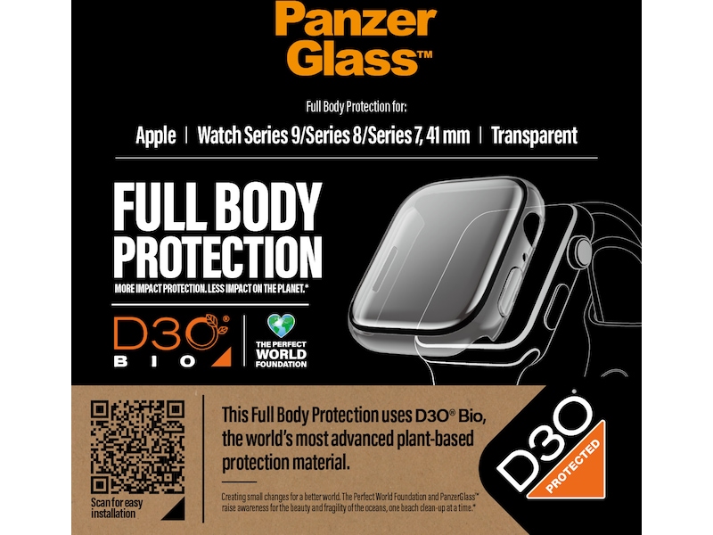 Støder dit ur mod bjergklipper på bjergtoppe? Eller slå den mod drypsten i underjordiske huler? Ingen problemer! Denne ridse-, stød- og faldbestandige skærmbeskytter fra PanzerGlass™ er hårdere end sej og holder dit ur sikkert mod farerne ved et eventyrligt-og-ikke-så-almindeligt-liv. Fronten er lavet af hærdet glas, mens den gennemsigtige plastikramme er lavet med D3O® Bio, verdens mest avancerede plantebaserede beskyttelsesmateriale, der er betroet til at beskytte militære elitestyrker og professionelle atleter. Den er endda faldtestet under 1 x Military Grade Standard-forhold, hvilket betyder, at den kan modstå flere fald fra en højde på 1,2 meter.