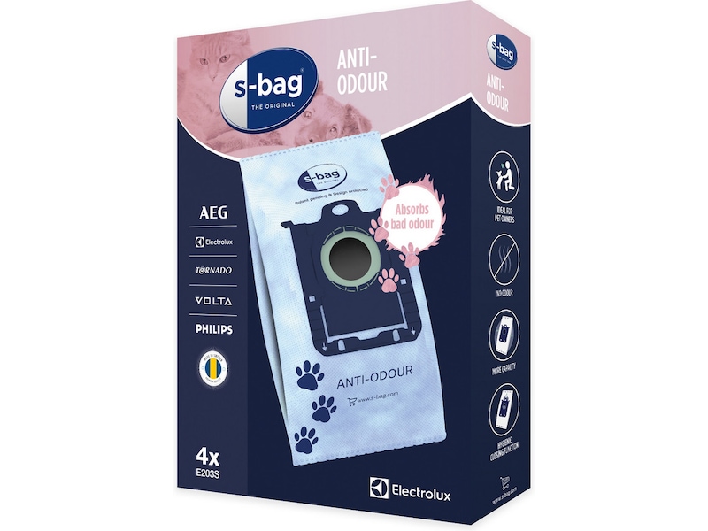 i modsætning til almindelige papirposer, der absorberer fugt, bruger s-bag® Anti-Odour et modstandsdygtigt syntetisk materiale belagt med en lugtabsorberende voks for at fange ubehagelige lugte og forhindre dem i at slippe ud af støvsugeren. Kæledyrsejere vil virkelig sætte pris på denne unikke lugtknuser.