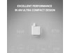 - Lille og kompakt: Takket være den nyeste teknologi er denne oplader væsentligt mindre end konkurrerende produkter af samme styrke. Det er den perfekte ledsager til på farten.