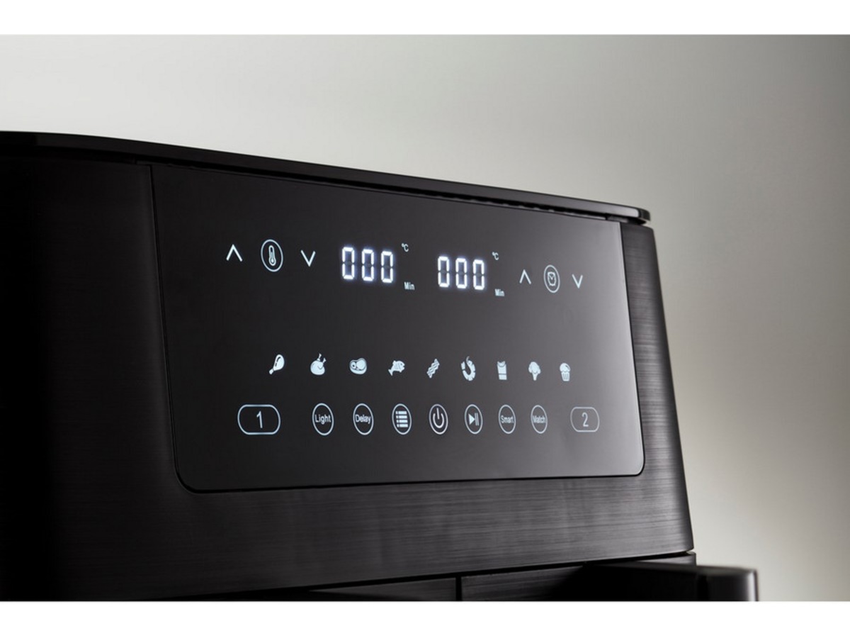 Dette giver dig fordelen ved at tilberede en dobbelt portion eller to forskellige retter på samme tid. Temperaturstyring og timer kan indstilles separat og styres fra 60 til 200 °C.