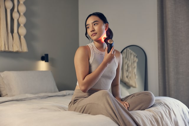 - LED rødt lys terapi – Reducerer rynker omkring øjnene