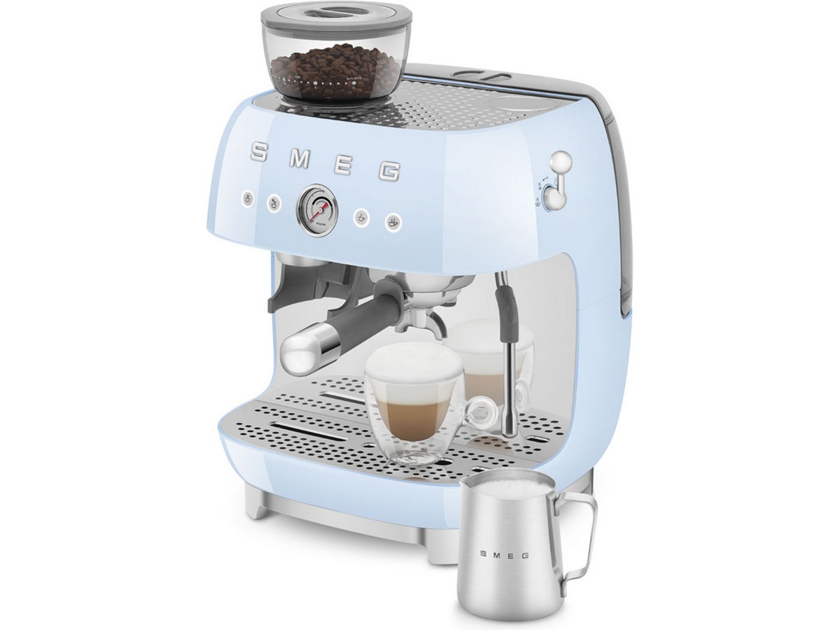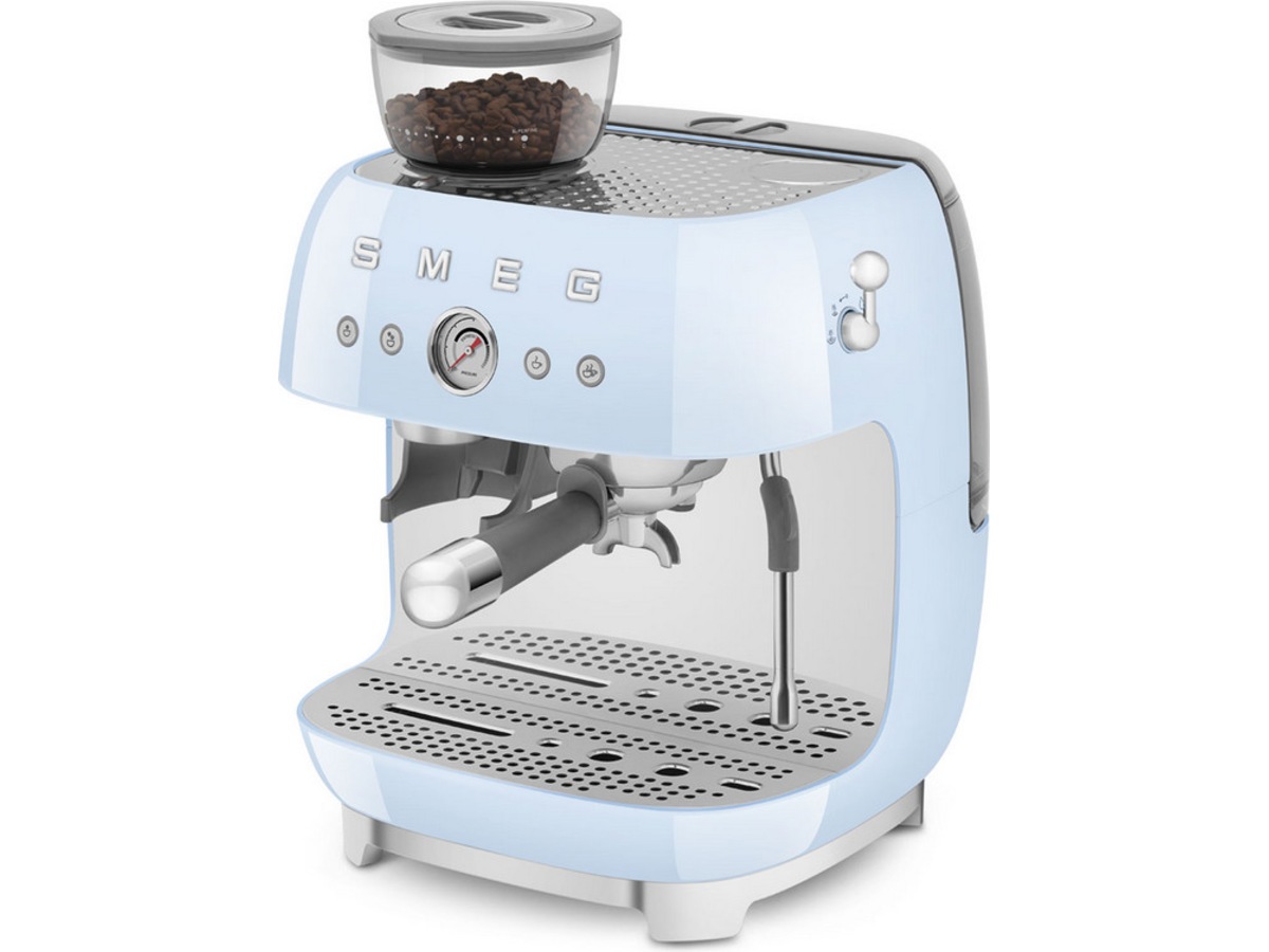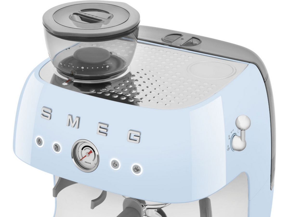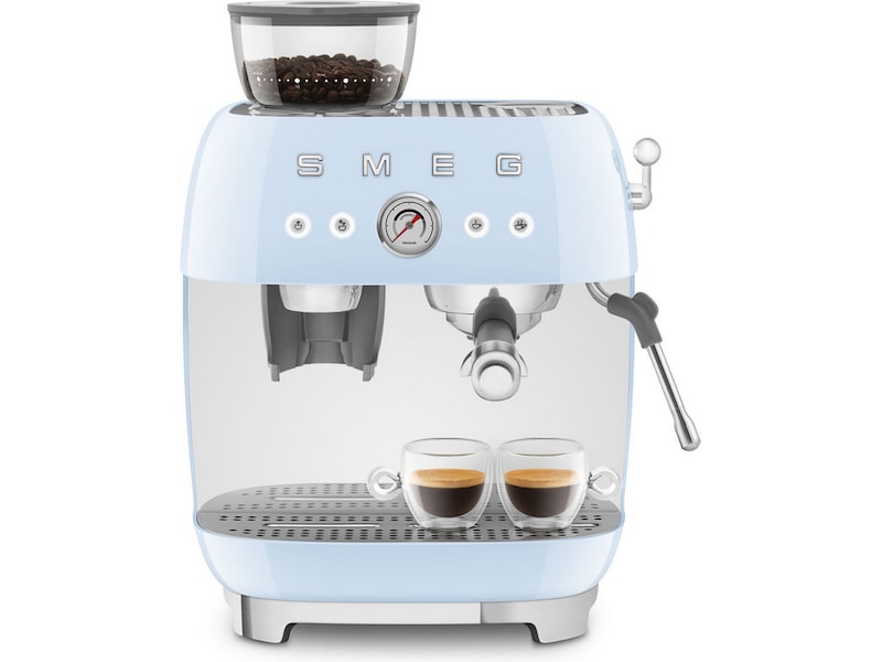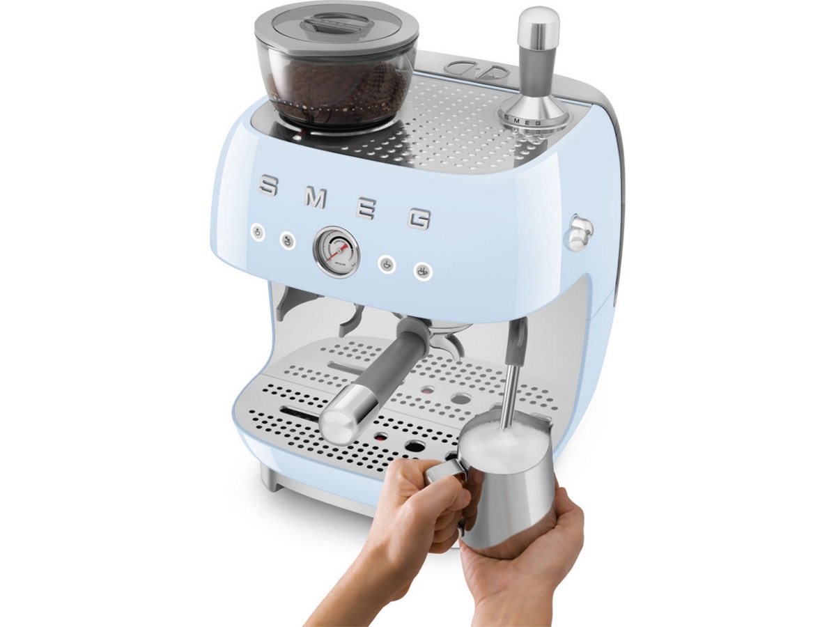 Oplev Barista-oplevelsen med Smeg EGF03 manuelle espressokaffemaskine: en forening af teknologier, der bidrager til tilberedning af god kaffe.