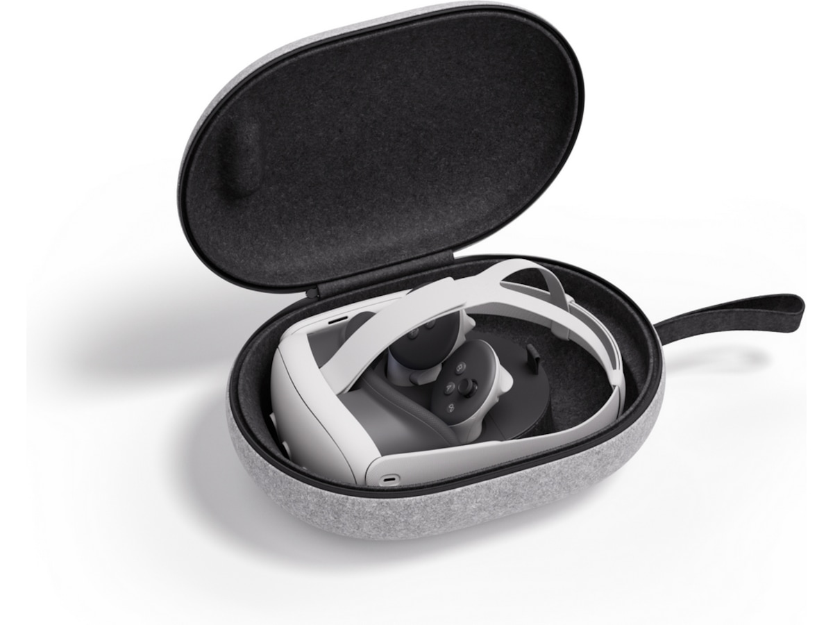 Designet til at passe til Meta Quest 3-headsettet, Touch Plus-controllerne, opladerkablet, adapteren, hovedremmen (standard eller Elite) og aktivitetsstropperne. Med den lette konstruktion, bløde hank og afrundede profil kan den tages med overalt.