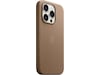Materialet består af slidstærk mikrotwill, der føles som blødt ruskind. FineWoven-materialet er også designet med tanke på miljøet – det er fremstillet af 68 procent genanvendt indhold og reducerer CO₂-belastningen markant sammenlignet med læder. Etuiet kan hurtigt sættes på og passer perfekt på din iPhone.