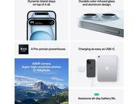 iPhone 15 Plus har et solidt design af gennemsigtigt glas og aluminium. Den er stænk-, vand- og støvafvisende.1 På fronten har den Ceramic Shield, som er stærkere end glasset på enhver smartphone. Og Super Retina XDR-skærmen på 6,7 tommer2 er op til dobbelt så lysstærk i sollys sammenlignet med iPhone 14.