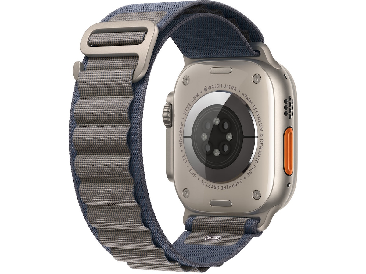 Apple Watch Ultra 2 kombineret med den nyeste Alpine Loop eller Trail Loop er kulstofneutral. Læs mere om Apples miljøforpligtelse på apple.com/2030.