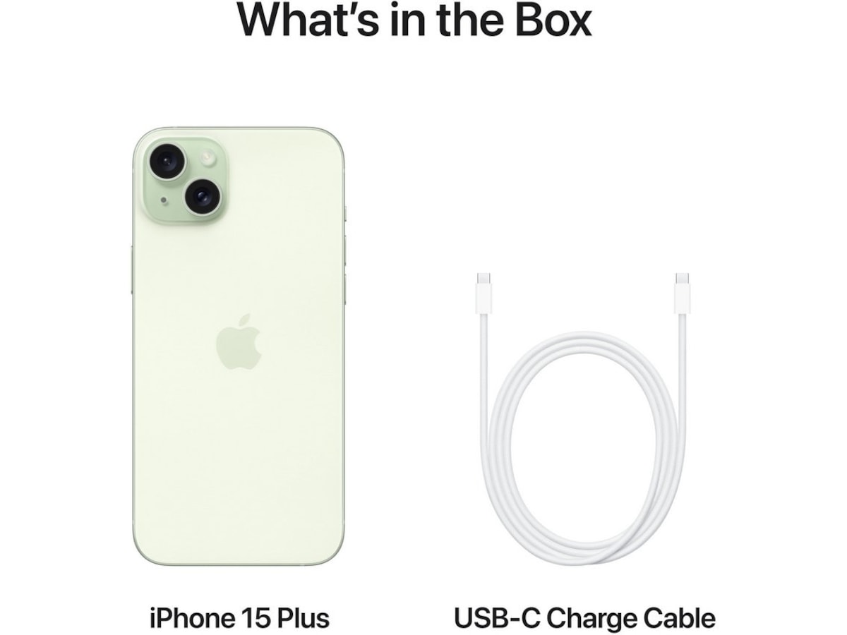 iPhone 15 Plus har Dynamic Island, 48 MP hovedkamera og USB-C i et solidt design af gennemsigtigt glas og aluminium.