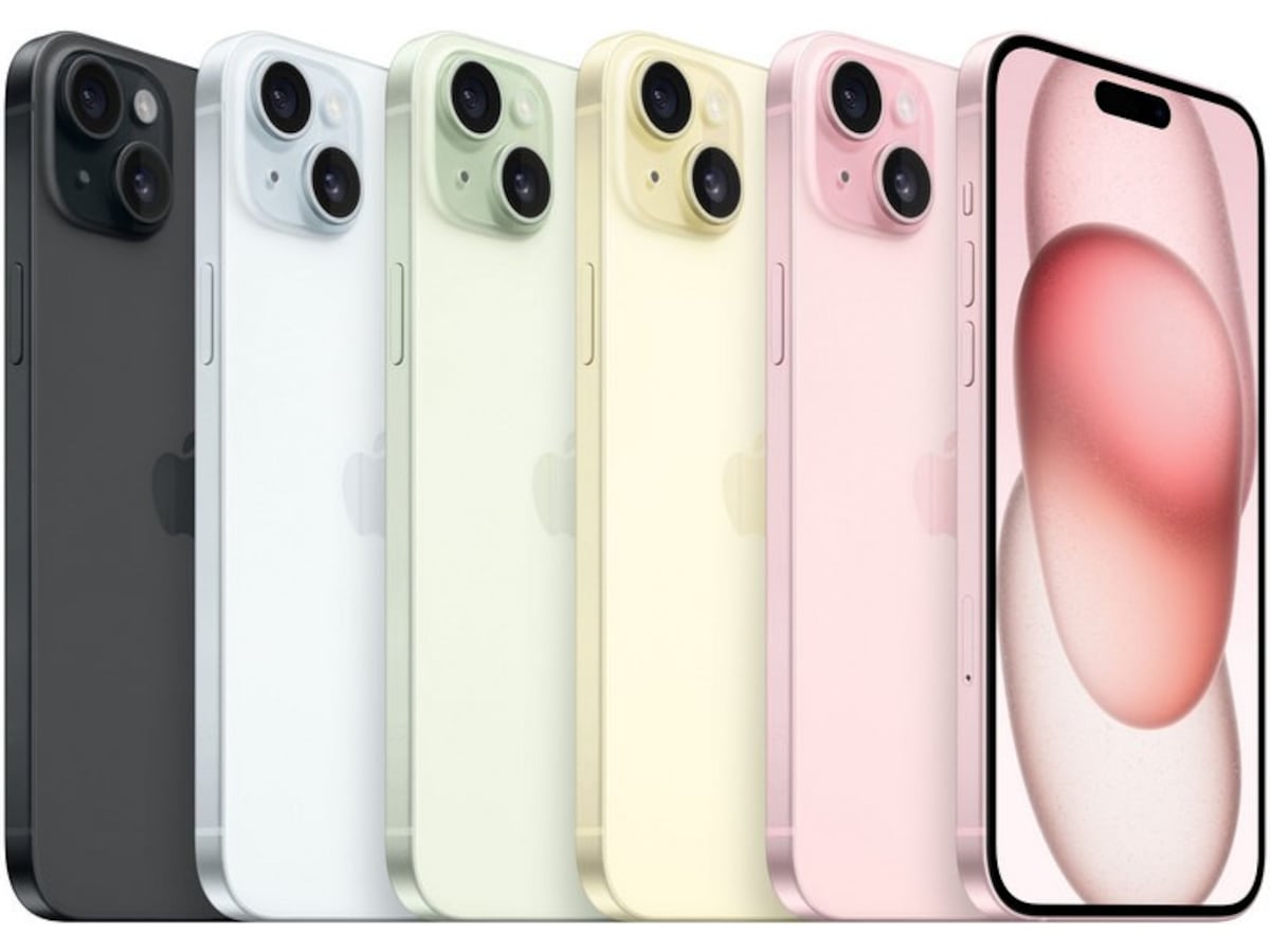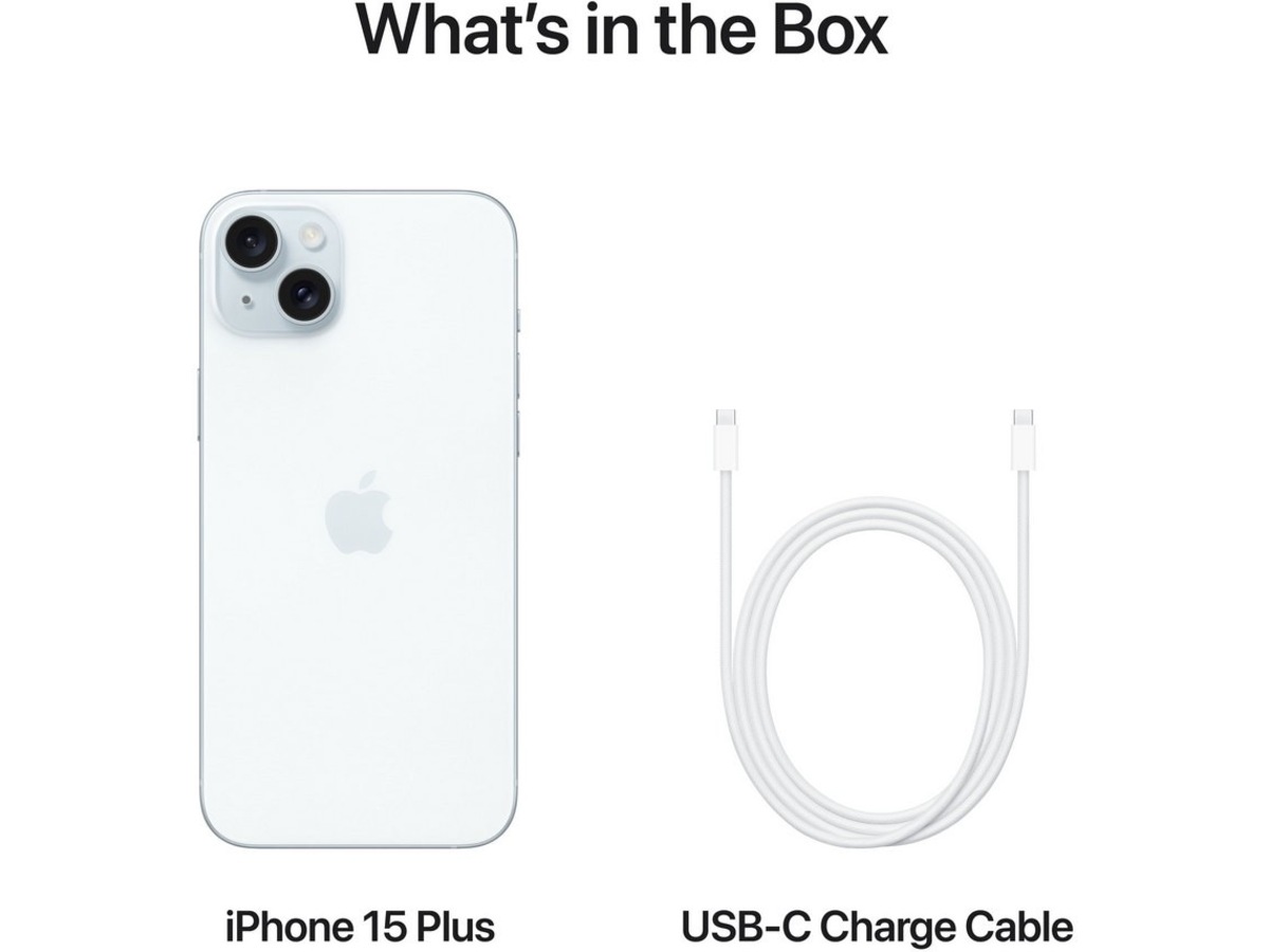 iPhone 15 Plus har Dynamic Island, 48 MP hovedkamera og USB-C i et solidt design af gennemsigtigt glas og aluminium.