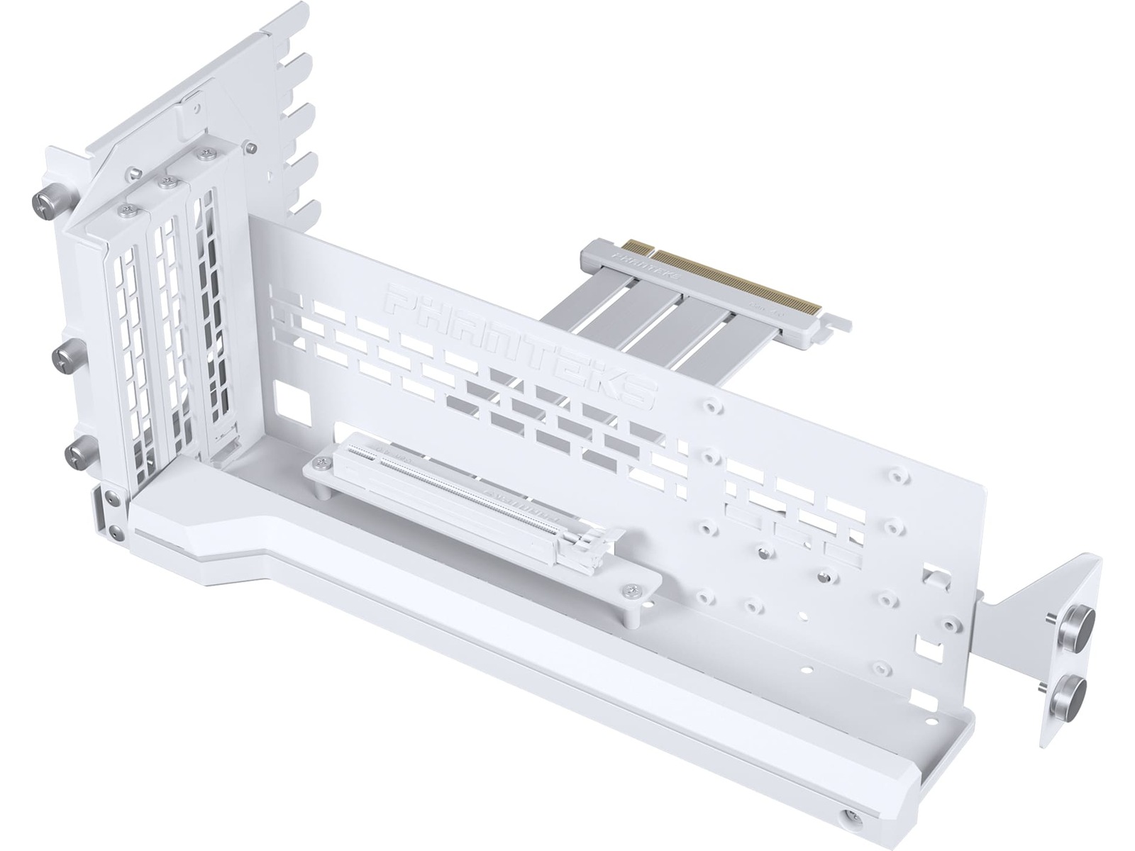 Premium GPU-beslaget kombinerer fleksibilitet og stil for at bringe fokus på grafikkort på en måde, som kun Phanteks kan. Beslaget er fuldt understøttet i lodret orientering, men kan også justeres op til 30 grader for at skabe et visuelt tiltalende display.