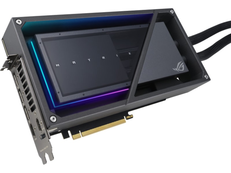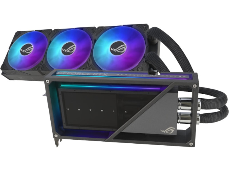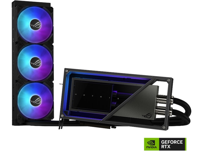 ROG Matrix GeForce RTX™ 4090 leverer absolut topydelse, mens den bibeholder stille termisk drift, via flydende termisk metalblanding på GPU-matricen, en premium 360 mm AIO-køler og et fantastisk hult metalrammedesign.