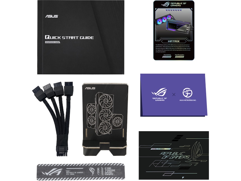 med videoadapter tilbehør ROG MATRIX NFT registerprocedure, Takkekort, 16-pin til 4x 8-pin kabeladapter, Krog og løkke-fastgører, Samlingskort