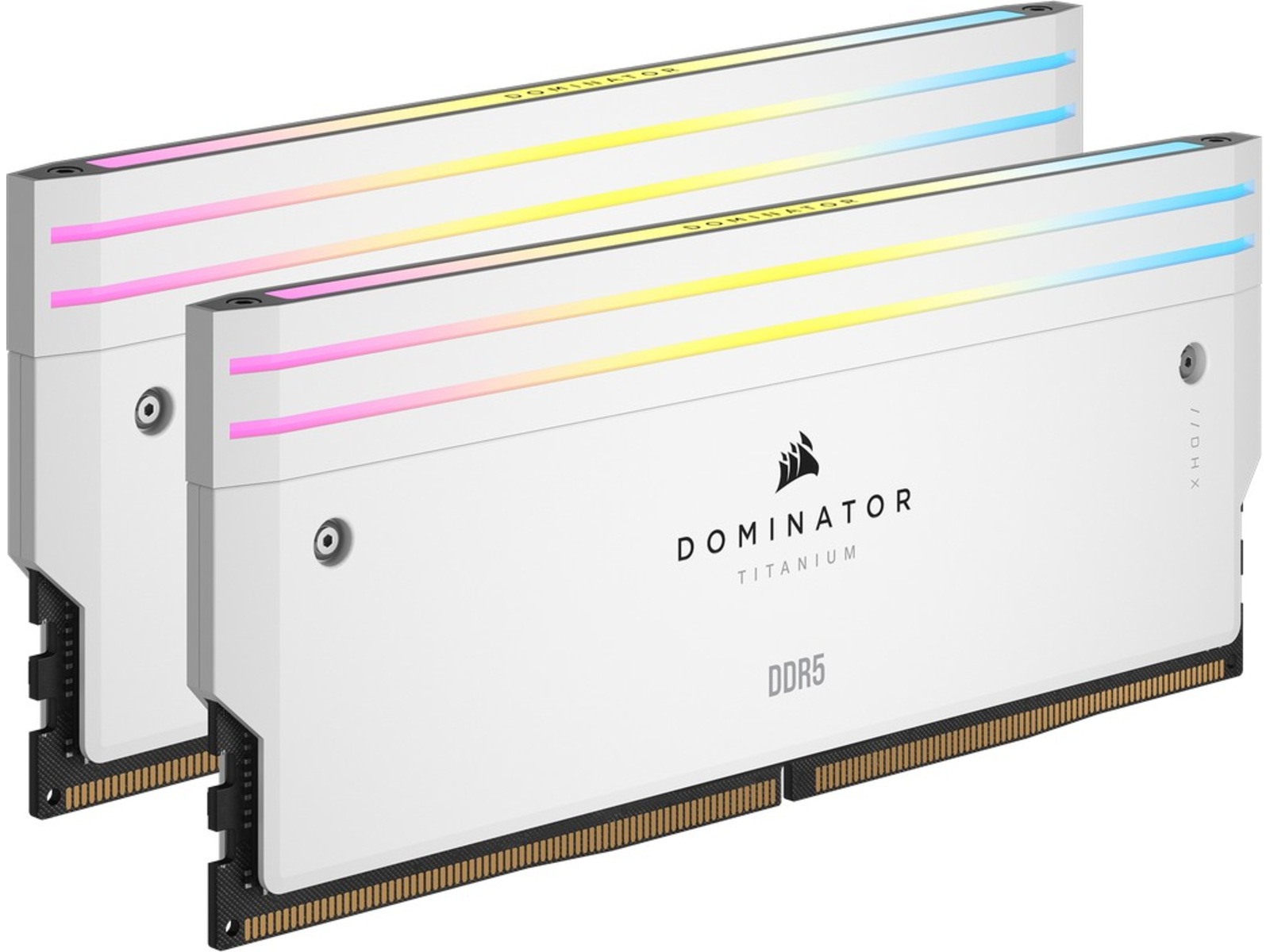 CORSAIR DOMINATOR TITANIUM DDR5 Memory kombinerer ren, raffineret styling med overlegen smedet aluminiumskonstruktion og levende RGB-belysning for en førsteklasses hukommelsesoplevelse. Tætskærmede højfrekvente hukommelseschips med lav latenstid understøttet af patenteret CORSAIR DHX-køling sikrer, at dit system kan håndtere komplekse opgaver hurtigere og mere jævnt end nogensinde før. Forudindstillede og brugerdefinerede dynamiske RGB-belysningsprofiler via CORSAIR iCUE Murals-software får mest muligt ud af de 11-zoners RGB-LED'er, der findes på hvert modul, mens det er nemt at indstille din hukommelse til dens optimale hastighed takket være understøttelse af Intel XMP 3.0. Med sin elegante stil og premium konstruktion sætter DOMINATOR TITANIUM standarden, som andre bliver bedømt efter.