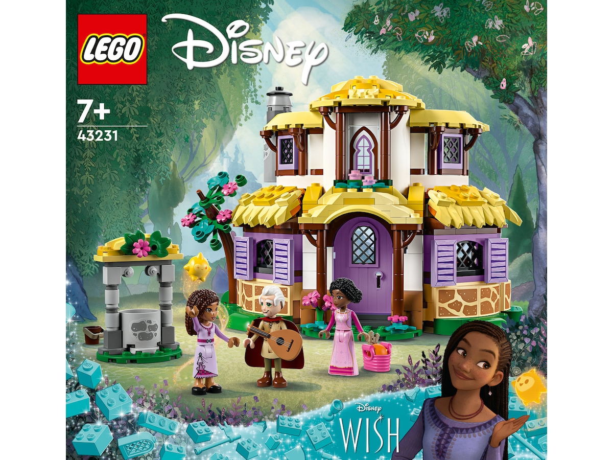 Tryllebind børn fra 7 år med Ashas hjem fra den kommende film Ønsket fra Walt Disney Animation Studios i LEGO® ǀ Disney bygge- og legesættet Ashas hytte (43231). Det indeholder en 2-etagers bygning med hængslede sider, der kan åbnes, et bord med en smileyface-kage, skabe med en notesbog, ske og gaffel og et soveværelse ovenpå med en seng og en pejs. Der er også en ønskebrønd og masser af andet legetilbehør. Kombiner LEGO ǀ Disney byggesættet med andre i serien (43223 og 43224, sælges separat) for at udvide legen. Mens børn bygger, kan de få nem og intuitiv hjælp gennem LEGO Builder appen, hvor de kan zoome ind på og dreje modeller i 3D, gemme sæt og holde styr på, hvor langt de er kommet.