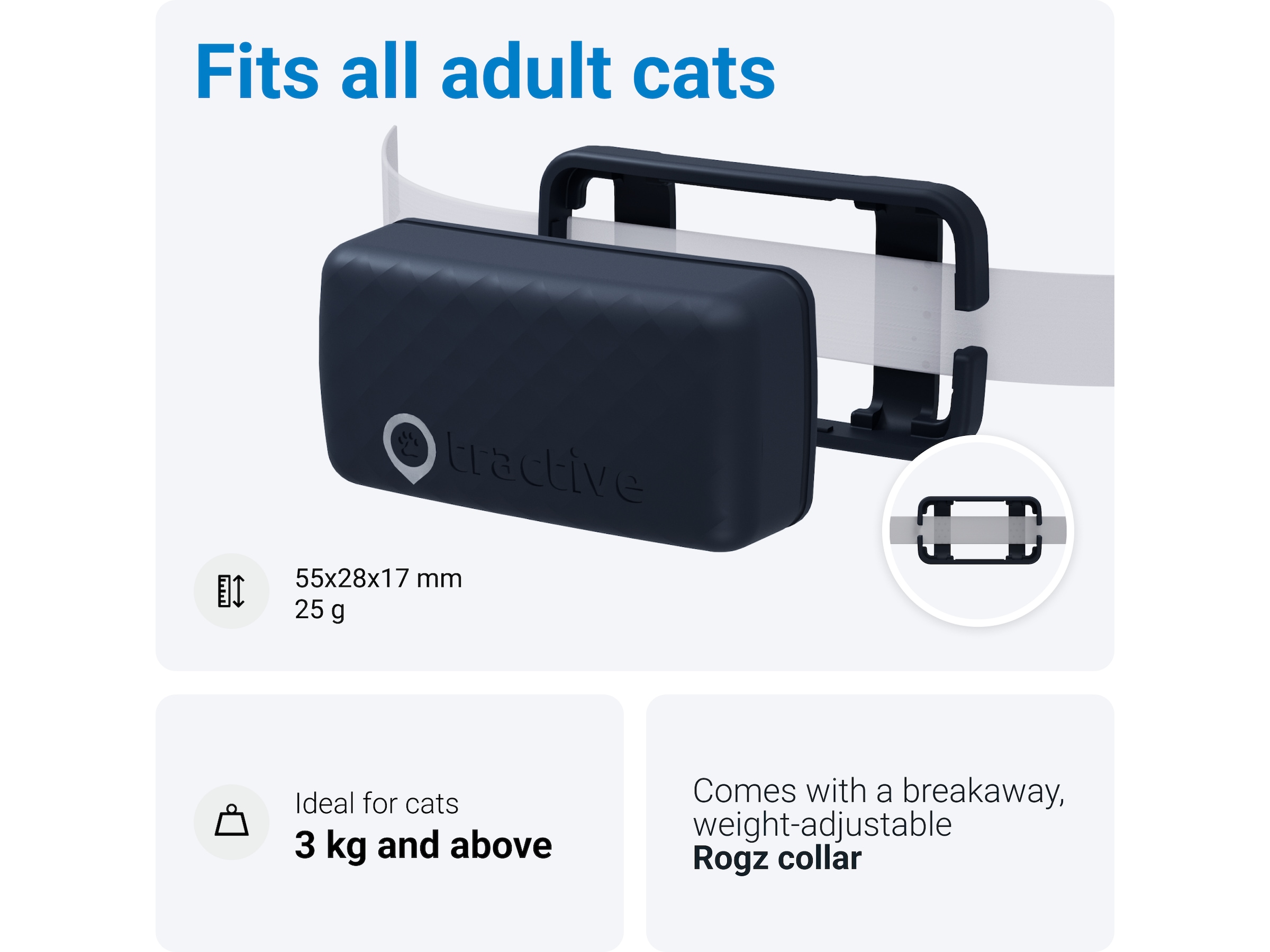 Lille, men robust GPS til katte. Komfortabel pasform til katte på over 3 kg.