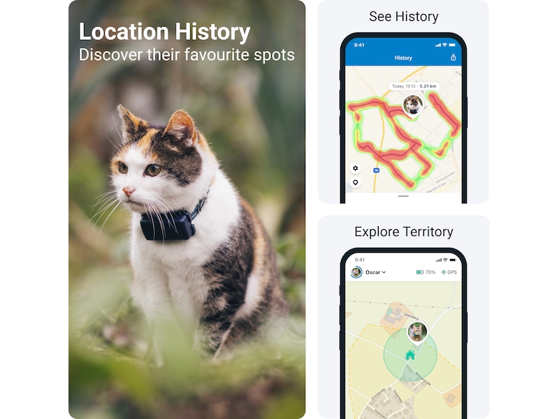 Se, hvad din kat har foretaget sig. Opdag dens yndlingssteder. Lad venner, familie og andre, du har tillid til, tracke sammen med dig.