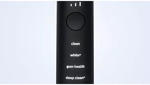 DiamondClean 9000 kommer med Clean, White+, Gum Health og Deep Clean+ for at opfylde dine børstebehov. Clean mode bruges til grundig børstning hver dag, White+ bruges til at fjerne misfarvning, Gum Health giver en skånsom men effektiv børstning af tandkødet, og Deep Clean+ giver dig en opkvikkende og meget grundig børstning. Tre intensitetsniveauer giver dig mulighed for at vælge mellem en højere indstilling for en mere grundig rengøring og en lavere indstilling for dem med mere følsomme tænder.