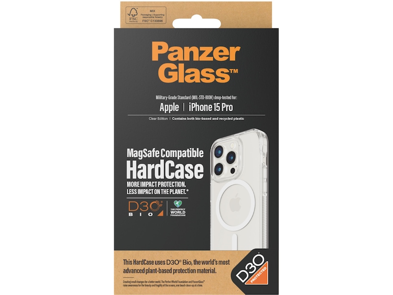 Vil du have mere beskyttelse mod stød med mindre påvirkning på planeten? Lavet med D3O® Bio, verdens mest avancerede plantebaserede beskyttelsesmateriale, der er tillid til at beskytte militære elitestyrker, denne PanzerGlass™ HardCase holder din telefon sikker mod fald, stød, ridser og det meste af hvad livet ellers måtte give dig. Bagsiden af kufferten er lavet af 100% genbrugsplast, stellet af plast med 44% plantebaseret indhold, og hele kufferten er faldtestet efter 3 x Military Grade Standard. Det betyder, at den kan modstå adskillige fald fra en højde på 3,6 meter eller en sidde-på-altan-og-tilfældigvis-tappe-din-telefon slags højde.