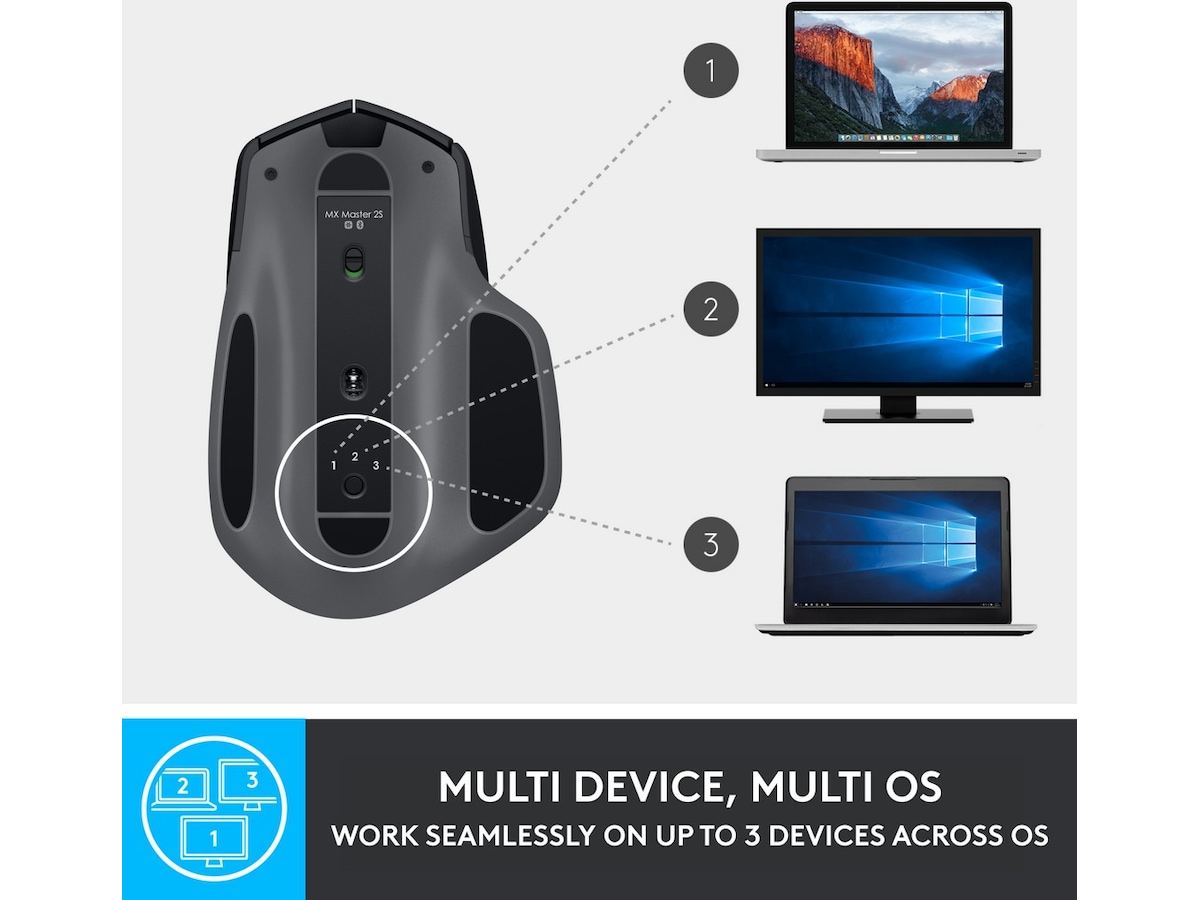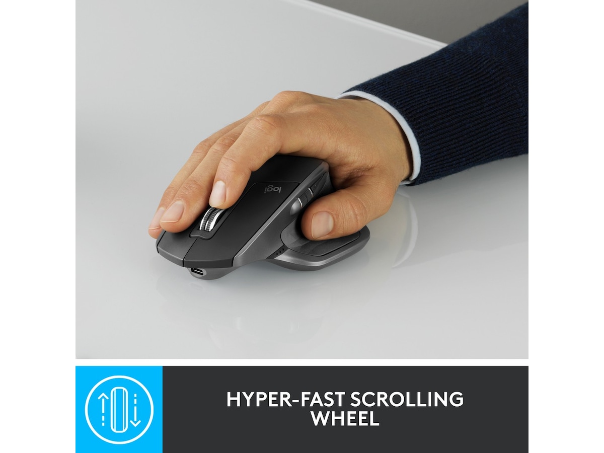 Den ultimative præcisionsmus til superbrugere. Udnyt styrken i Logitech Flow og fyt indhold problemfrit mellem tre computere.Scroll gennem dokumenter og websider hurtigere og nemmere med det hastighedstilpassede scrollehjul. Holder strøm til en hel dag på kun tre minutter. En skulpturel, håndlavet form sikrer behagelig hånd- og håndledsstøtte.