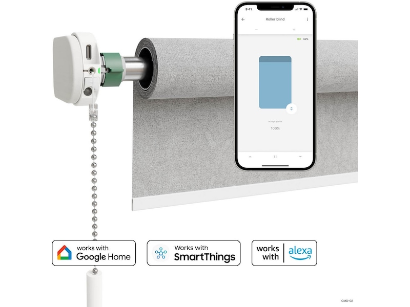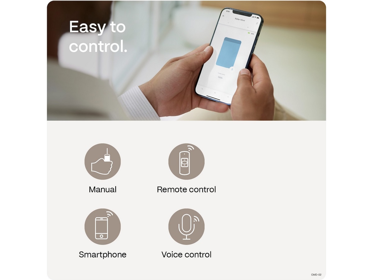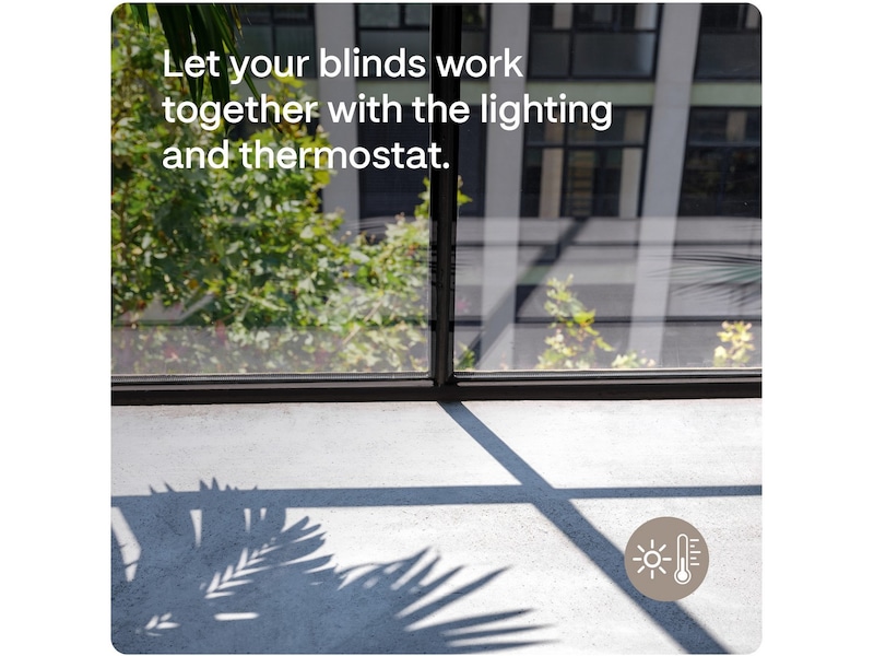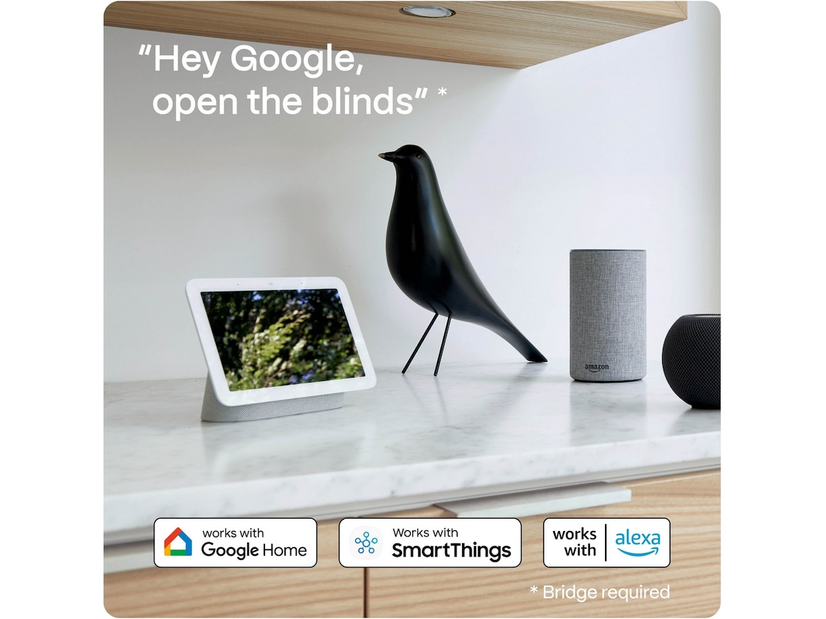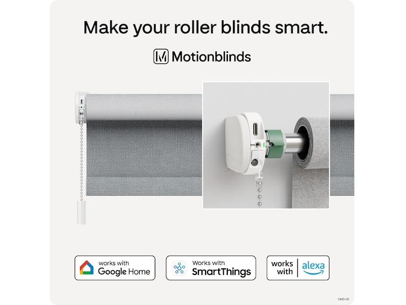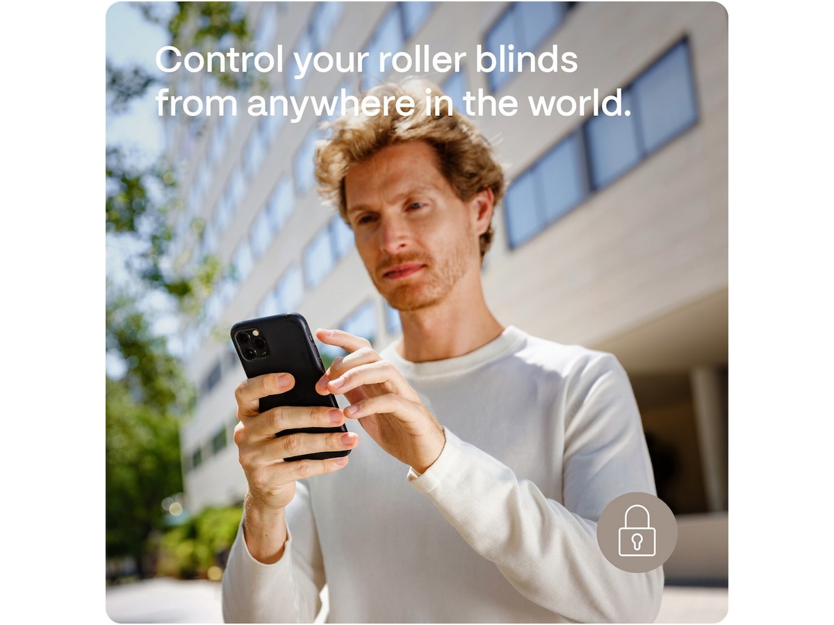 Vil du automatisere rullegardinet med forudindstillede timere, fjernstyre det med din smartphone eller tilslutte det til et smart home system såsom Google, Alexa eller SmartThings for at få rullegardinet til at fungere sammen med andre enheder i hjemmet og styre det med din stemme gennem smarthøjttalere? Installer derefter MotionBlinds Wi-Fi-broen. Denne fås separat som tilbehør, ligesom fjernbetjeningen.