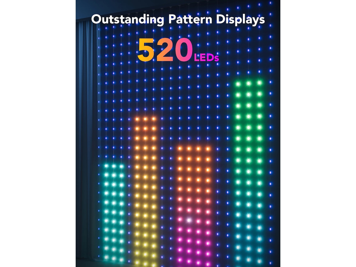 Oplev et fantastisk lysshow med Govee RGBIC Curtain Lights. Med 520 LED'er kan du skabe dynamiske lyseffekter og skræddersy dit eget gør-det-selv lysshow. Tilføj et særligt touch til enhver aften med disse blændende lys.