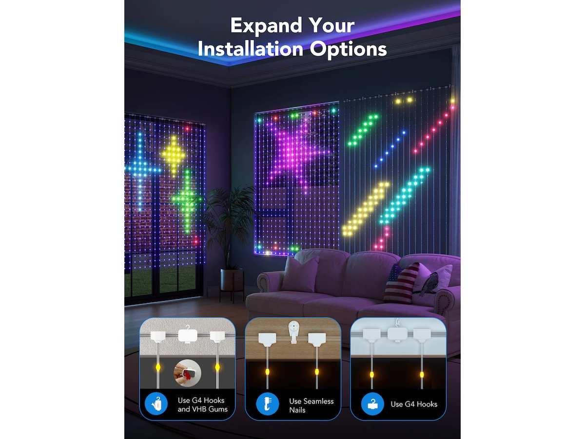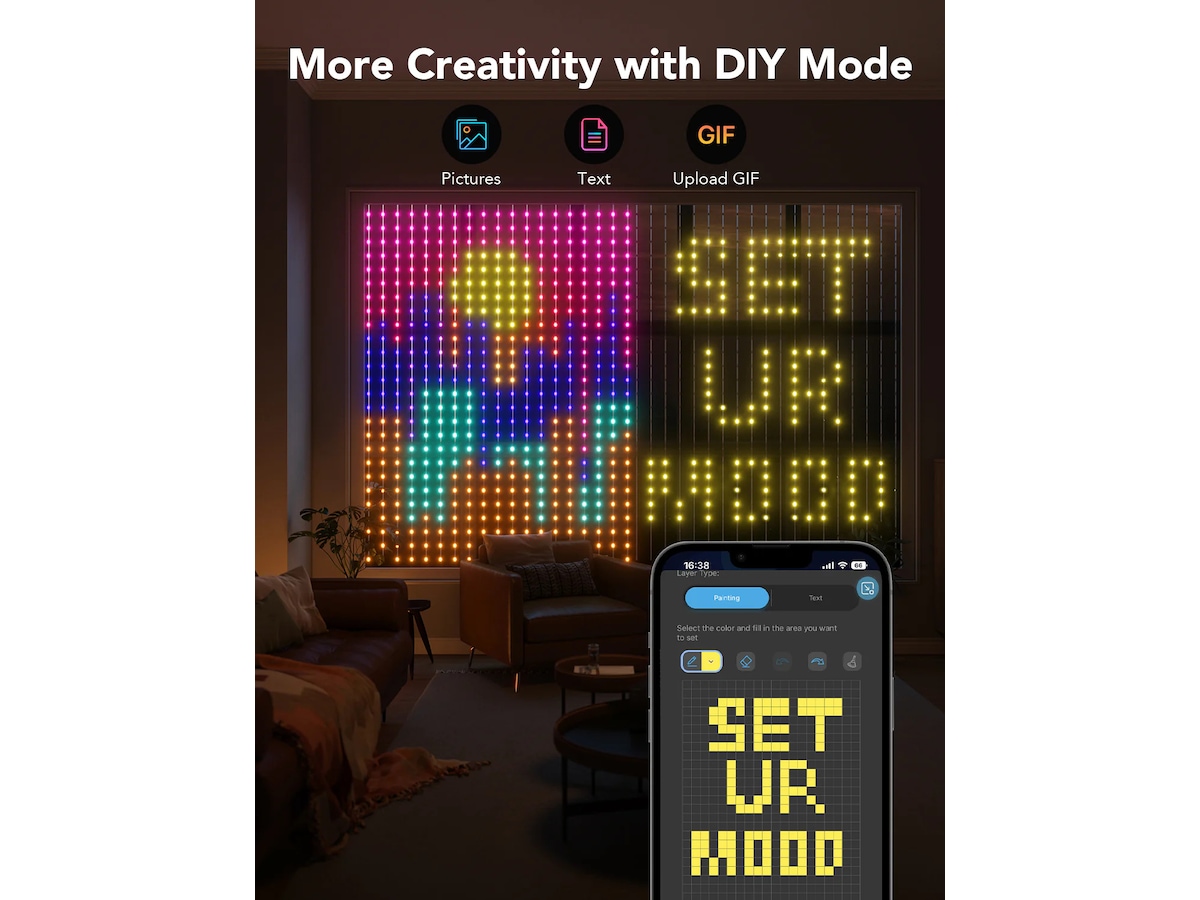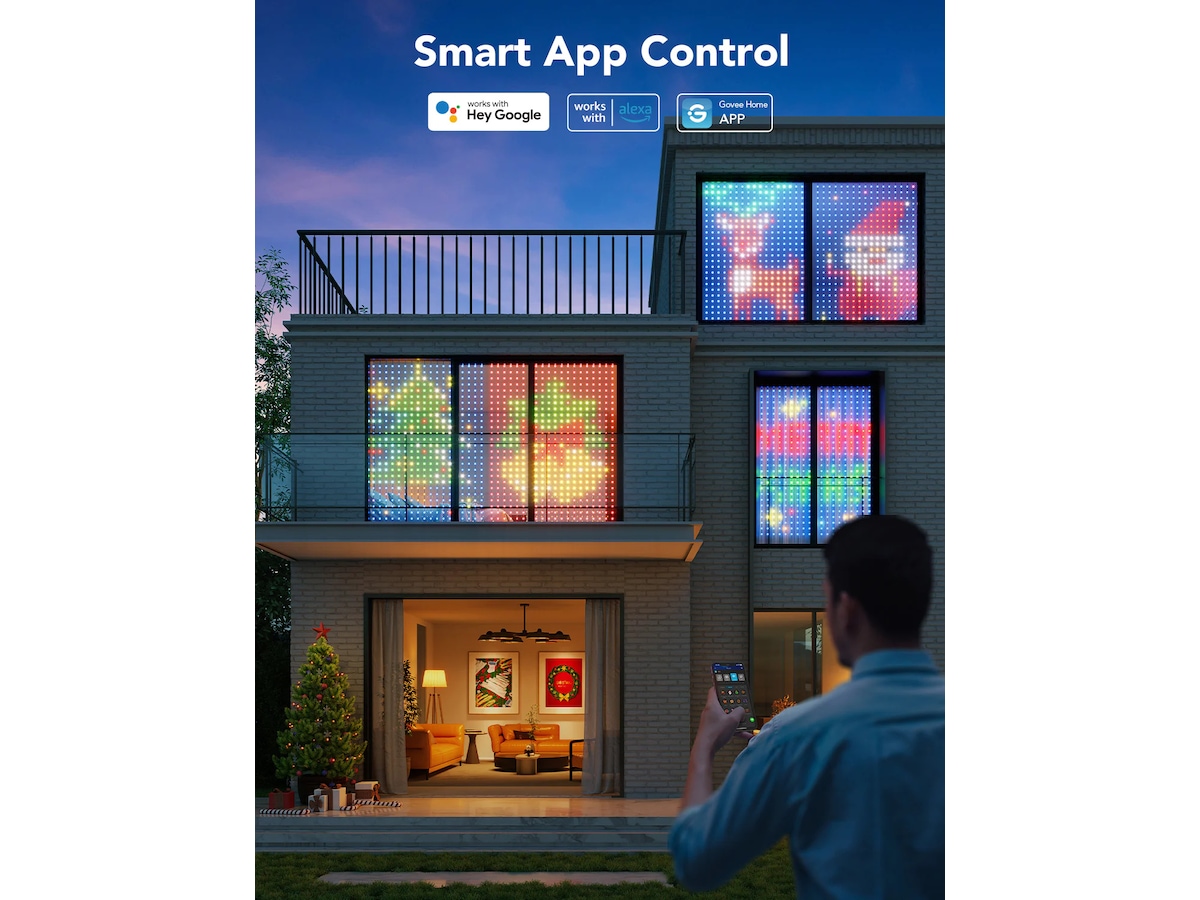 Når du er væk hjemmefra og ønsker at efterlade en overraskelse til en ven eller en elsket, kan du fjernstyre disse LED-gardinlys via Govee Home App. Lysene understøtter også stemmestyring via Alexa og Google Assistant.