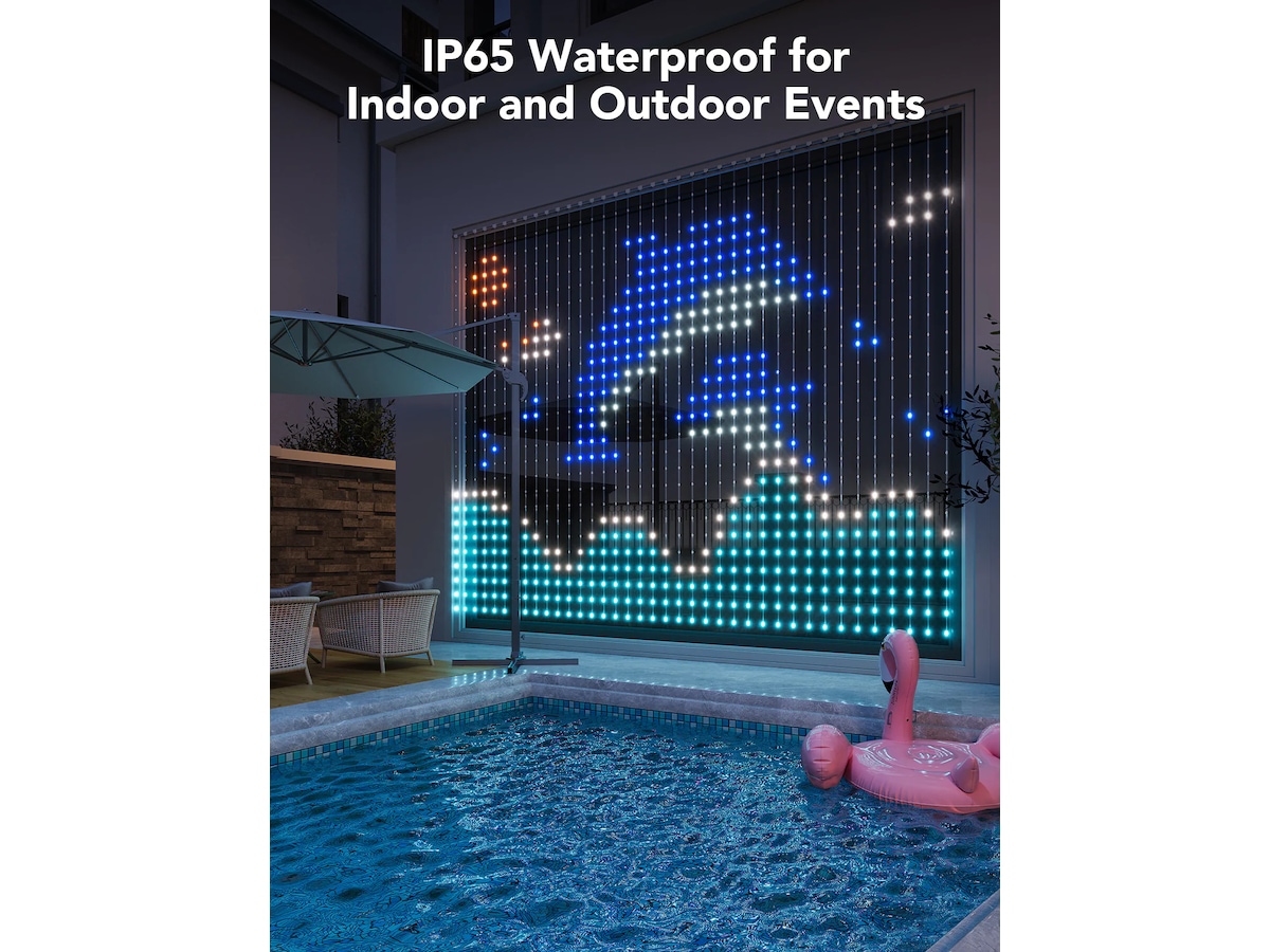 Gardinlysene og kontrolboksen er klassificeret IP65, mens adapteren er klassificeret IP44. Kan bruges indendørs (soveværelser, stuer, spillerum, gardiner osv.) og udendørs (gårdhave).