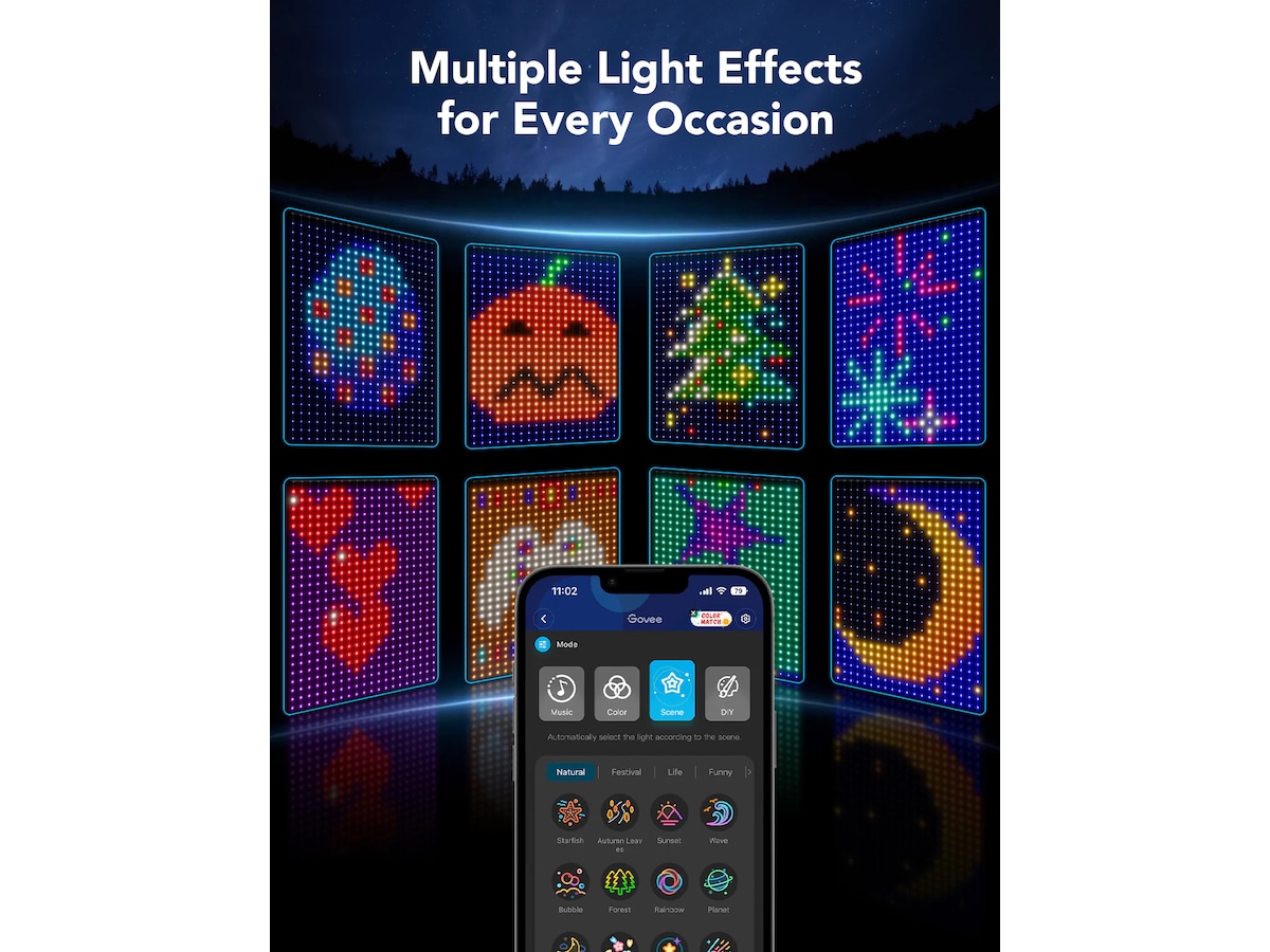 - Flere lyseffekter for hvert øjeblik: Forstærk de fedeste vibes til enhver ferie eller speciel lejlighed.