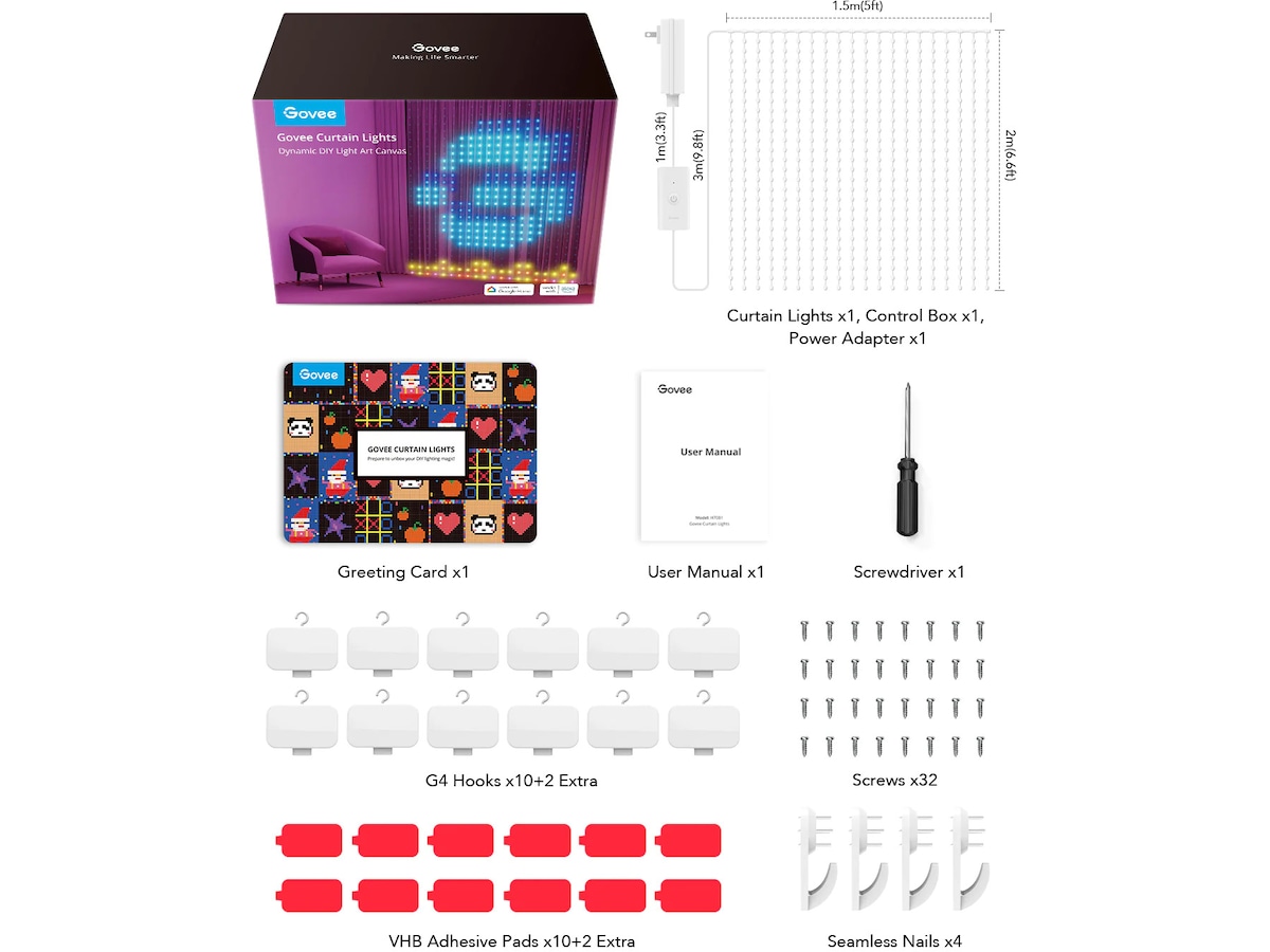- Håndfri stemmestyring for at gøre dit liv smartere: Fjernstyr disse LED-gardinlys via Govee Home App.