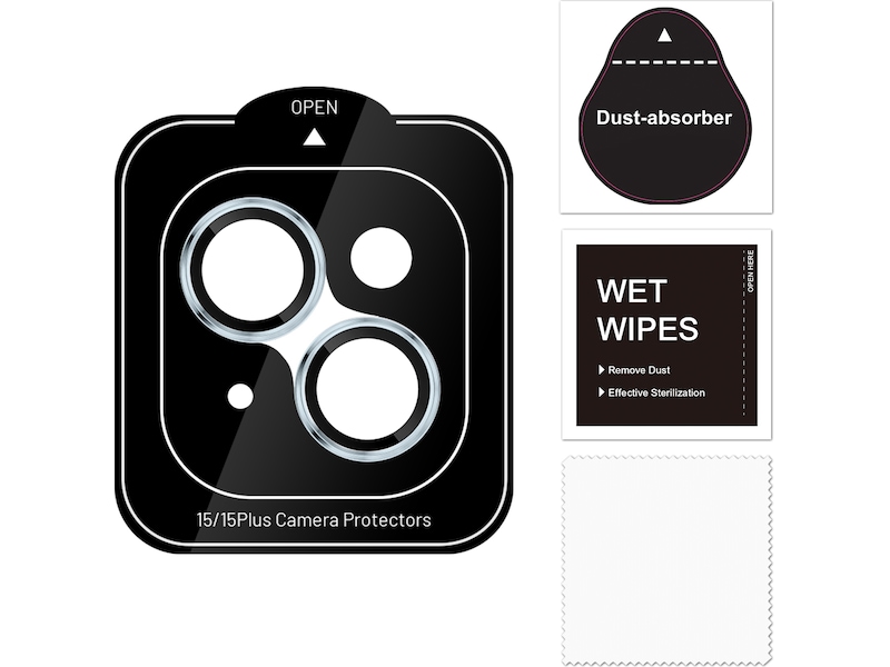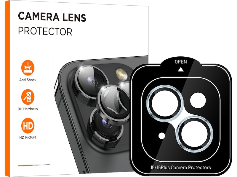 Kameralinsebeskyttere lavet af 9H hærdet glas. Ringene passer over kameralinserne og beskytter mod ridser og stødskader.