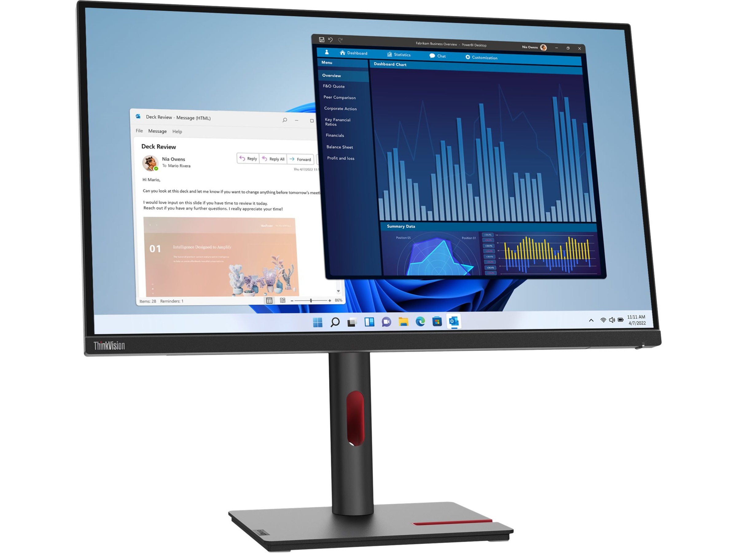 Nyd en opgraderet brugeroplevelse, der gør komfort og lethed til en prioritet med ThinkVision T27i-30-skærmen. Spar plads og reducer rod med renere kabelstyring. Joystick-kontrol giver nem kontrol lige ved hånden. Et ergonomisk stativ med fuld funktion og bredere justerbare områder inklusive løfteområde og hældning sikrer, at du kan placere skærmen perfekt for din komfort. ThinkVision T27i-30 Monitor understøtter også kabelløs modulær VoIP-løsning 1og en telefonholder for øget fleksibilitet. Det er også miljøvenligt med bæredygtig papirmasseemballage, der er fantastisk for miljøet!