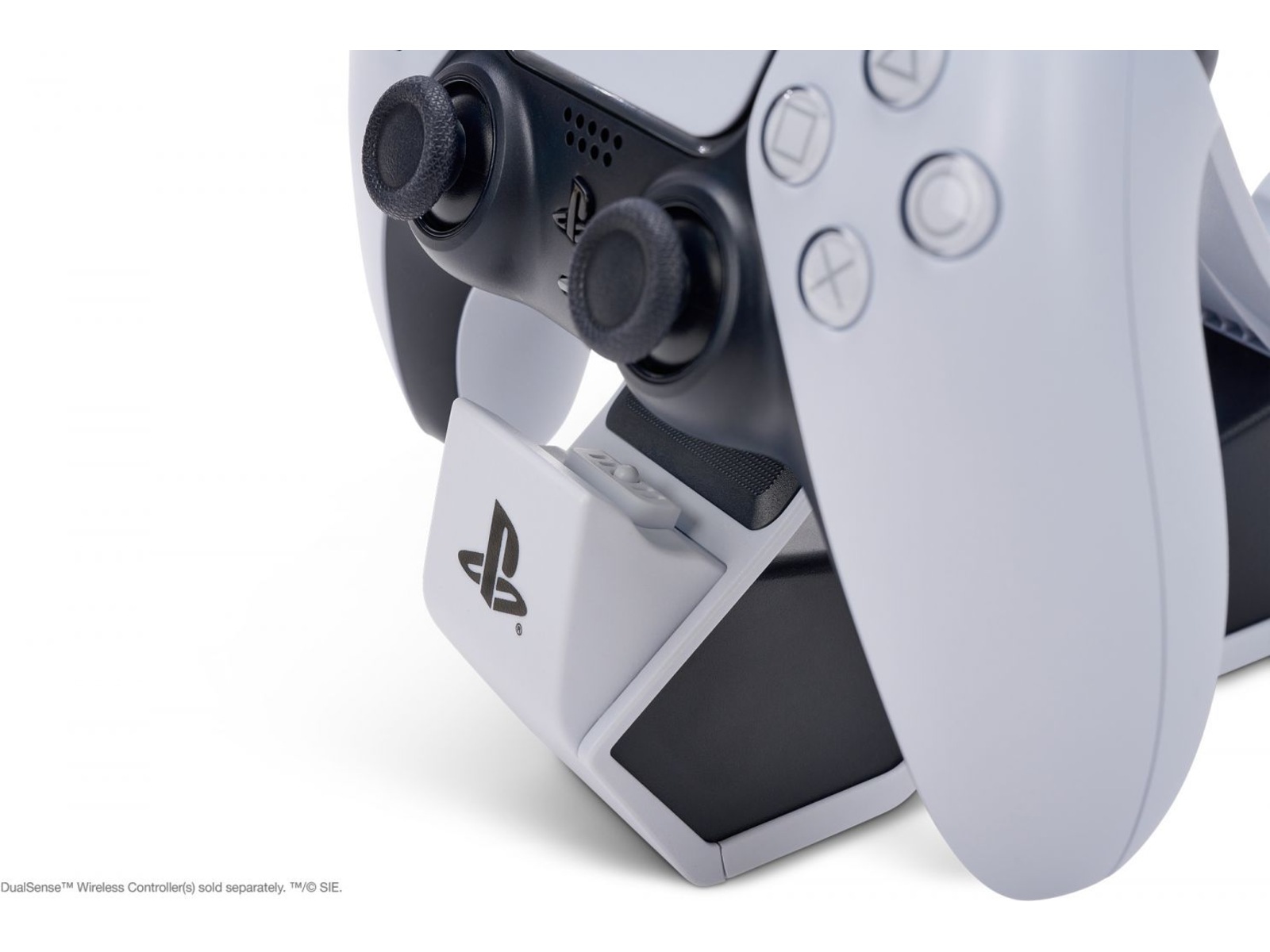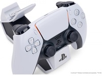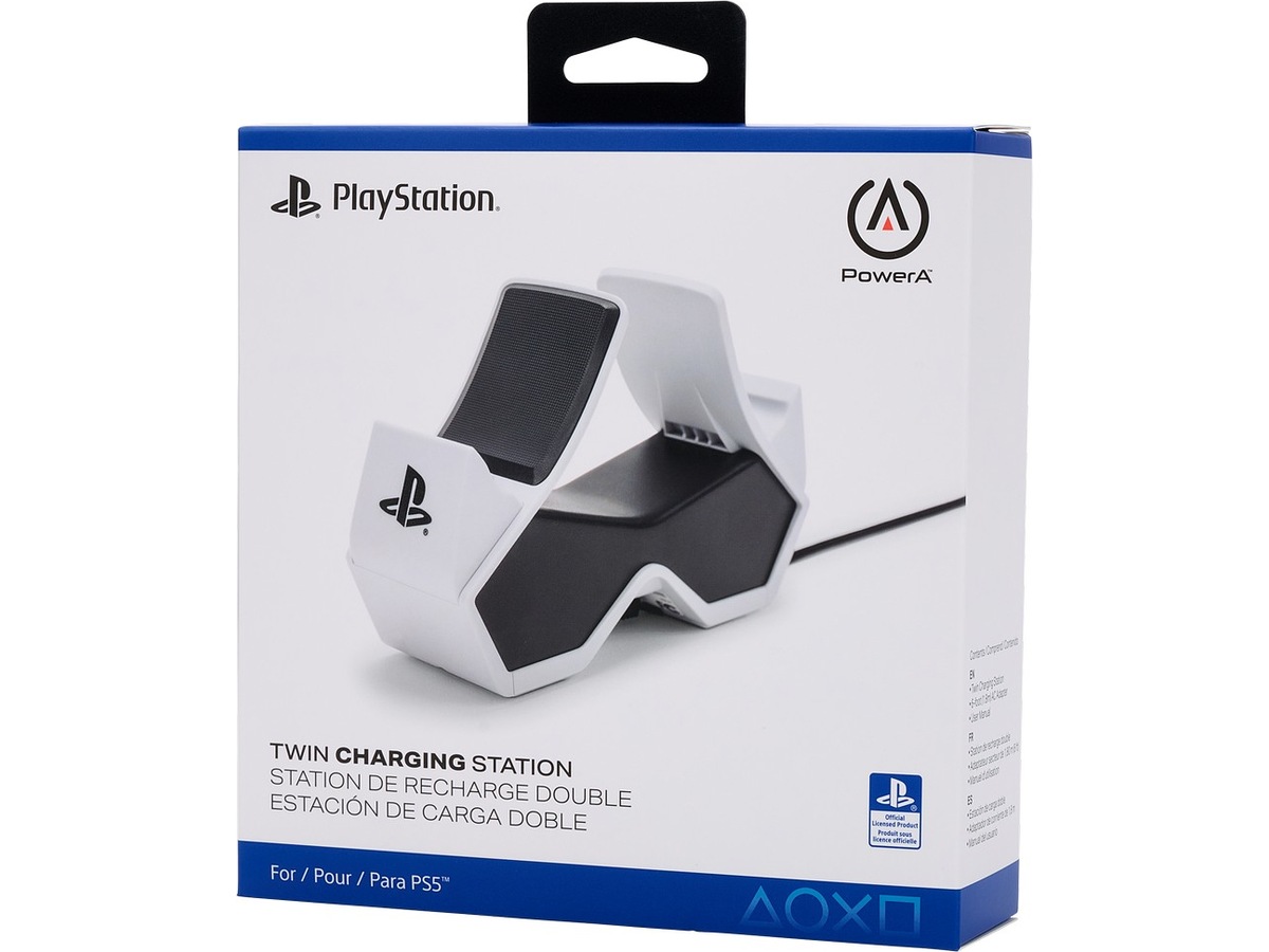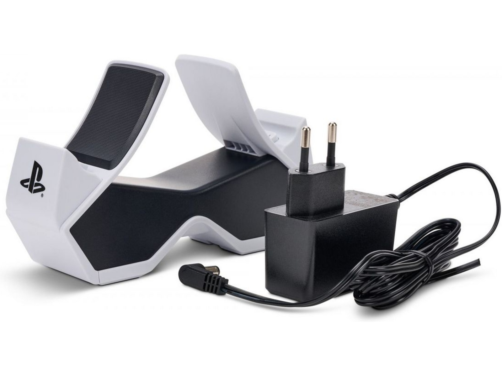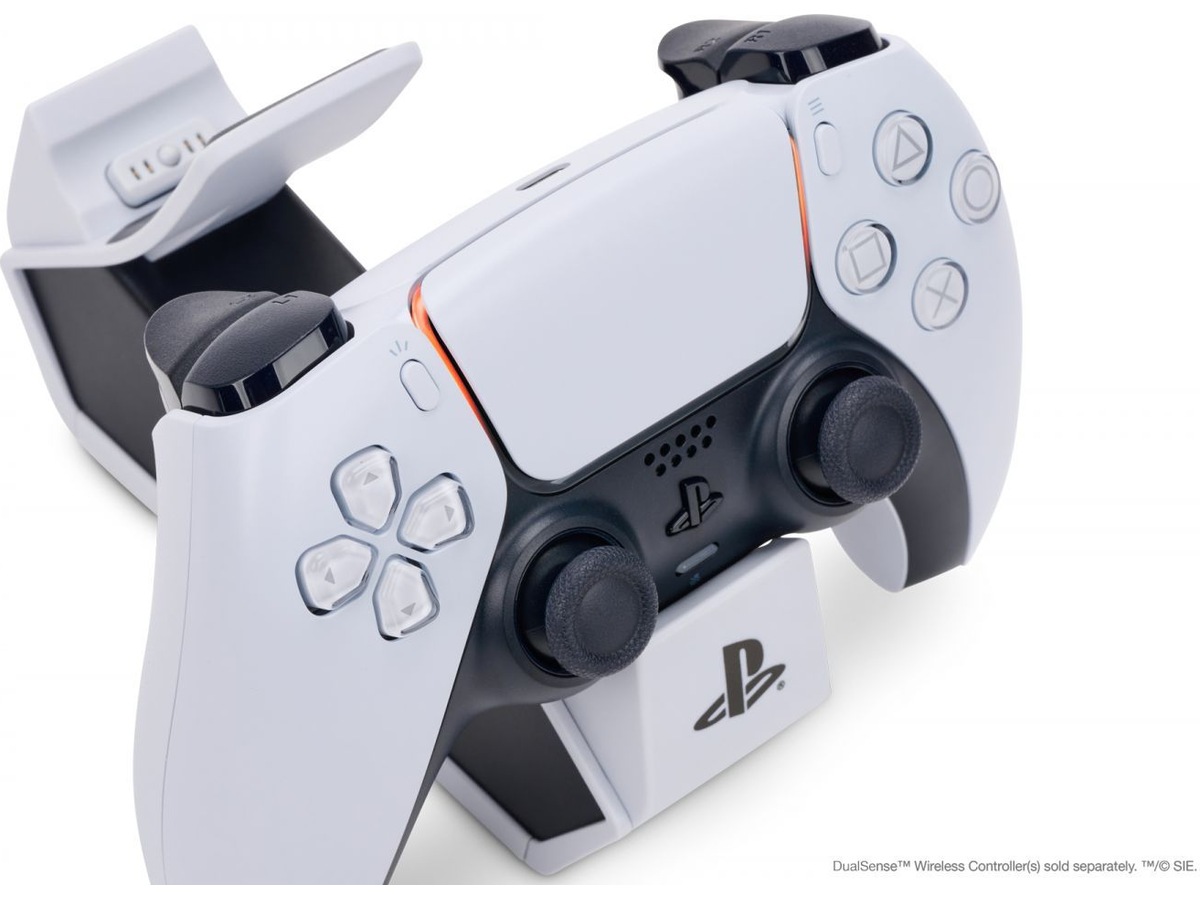 Oplad og vis dine DualSense trådløse controllere med den officielt licenserede dobbelte ladestation til PlayStation 5. Det er nemt at oplade to controllere samtidig – klik dem ned for at se LED-basen lyse op og vise opladningsniveauet. Når de er fuldt opladede, klikker du dem ned igen for at frigøre kontakten og begynde at spille. Eller lad controllerne blive på stationen som en flot og iøjnefaldende fremvisning.