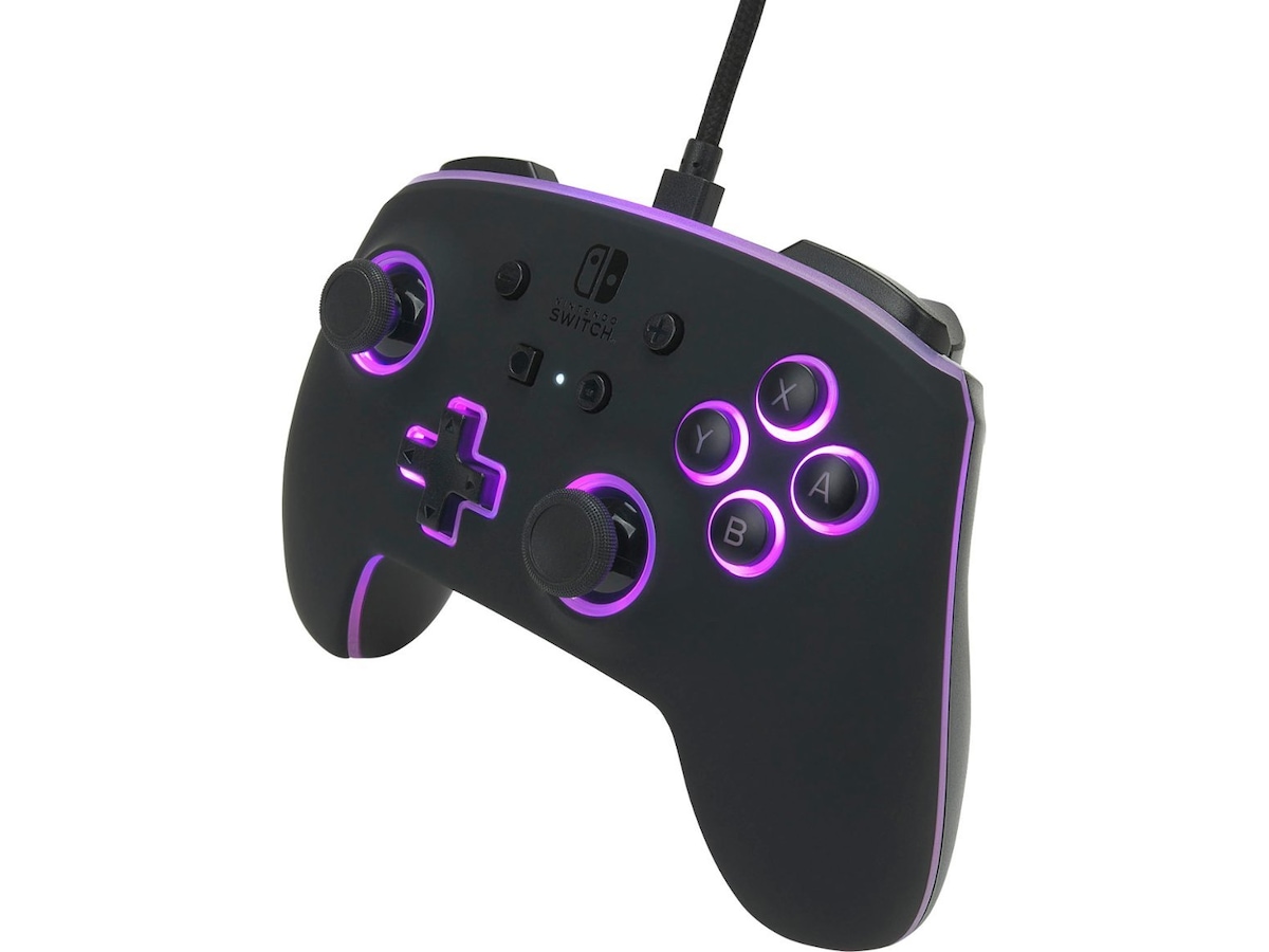 Oplys dit gameplay med Spectra Enhanced Wired Controller til Nintendo Switch. Med tilpasset LED-kantbelysning med 8 farver at vælge imellem, kan du endda vælge Rainbow Phase Mode for automatisk at skifte gennem alle 8 farver. Inkluderer 3,5 mm headset-stik og 10 fod. (3m) aftageligt USB-C-kabel.