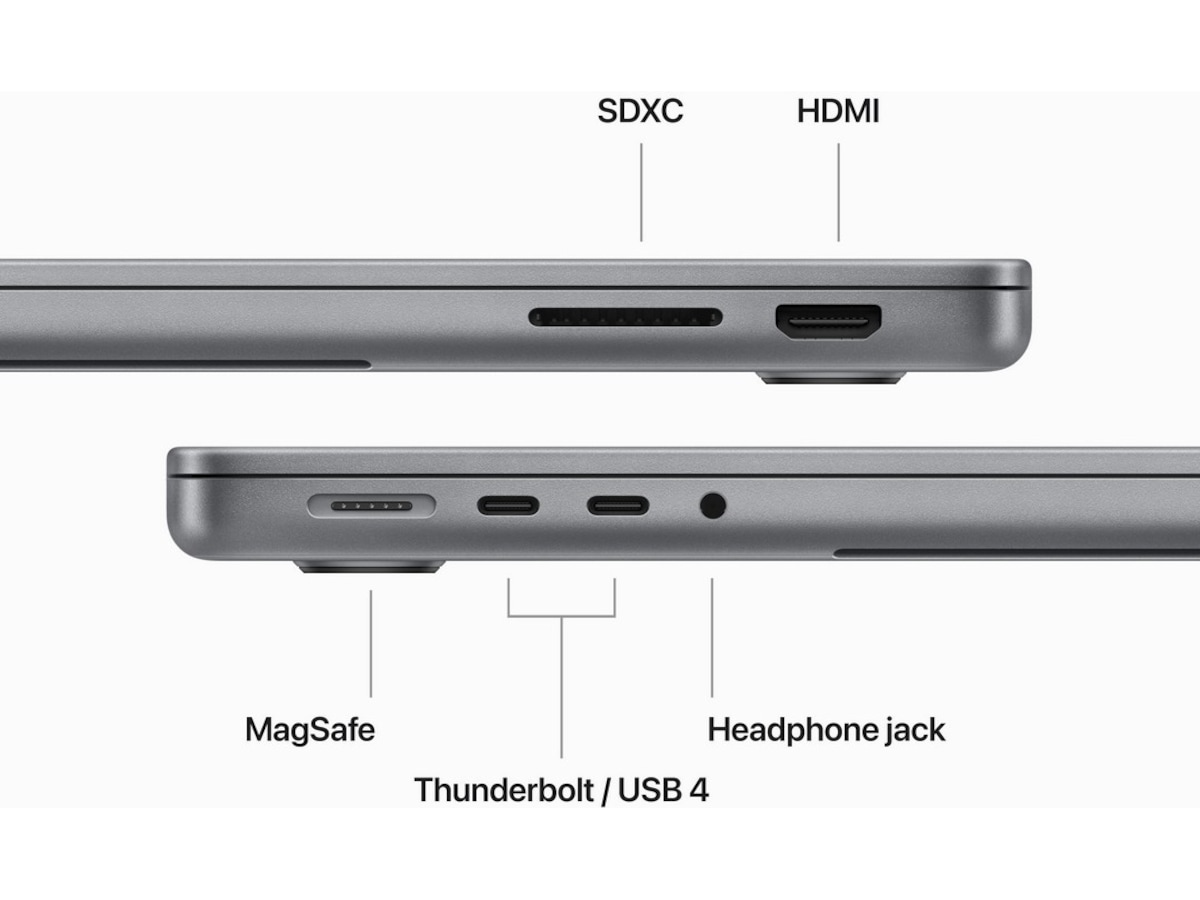 - TILSLUT TIL ALT – Denne MacBook Pro har en MagSafe-opladningsport, to Thunderbolt / USB 4-porte, en SDXC-kortport, en HDMI-port og et hovedtelefonstik. Få en hurtig trådløs forbindelse med WiFi 6E(5) og Bluetooth 5.3. Understøttelse af én ekstern skærm.
