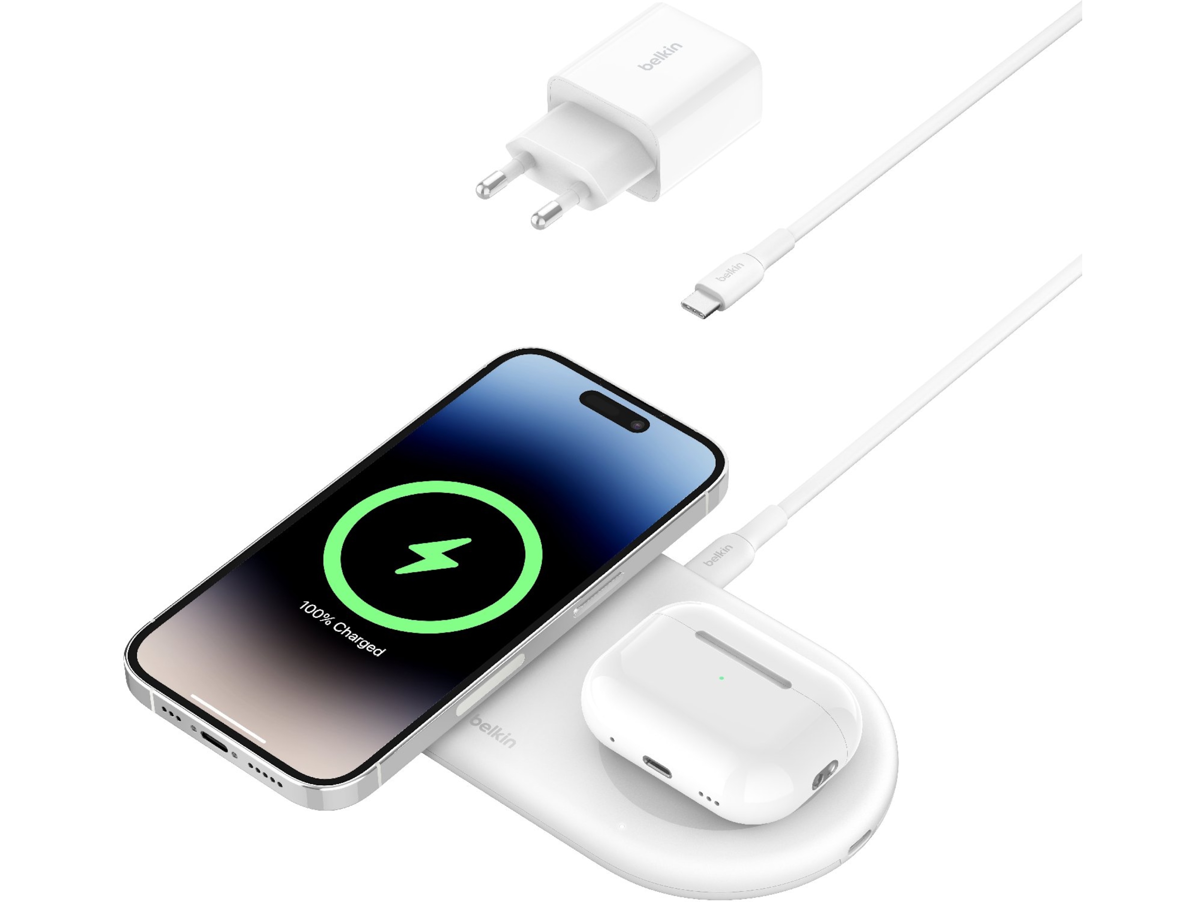 Belkin Qi2 15W 2-in-1 trådløs oplader (hvid)